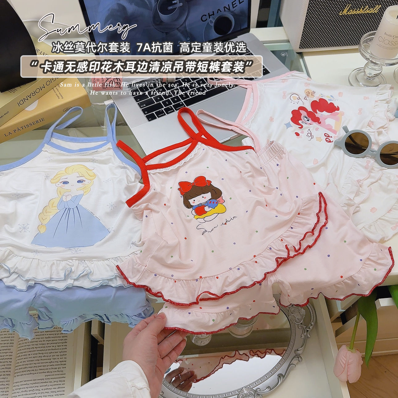 2025 新しい夏のテンセルモーダル子供サスペンダースーツ女の子ノースリーブスカート子供服怠惰なプリンセス薄型スタイル