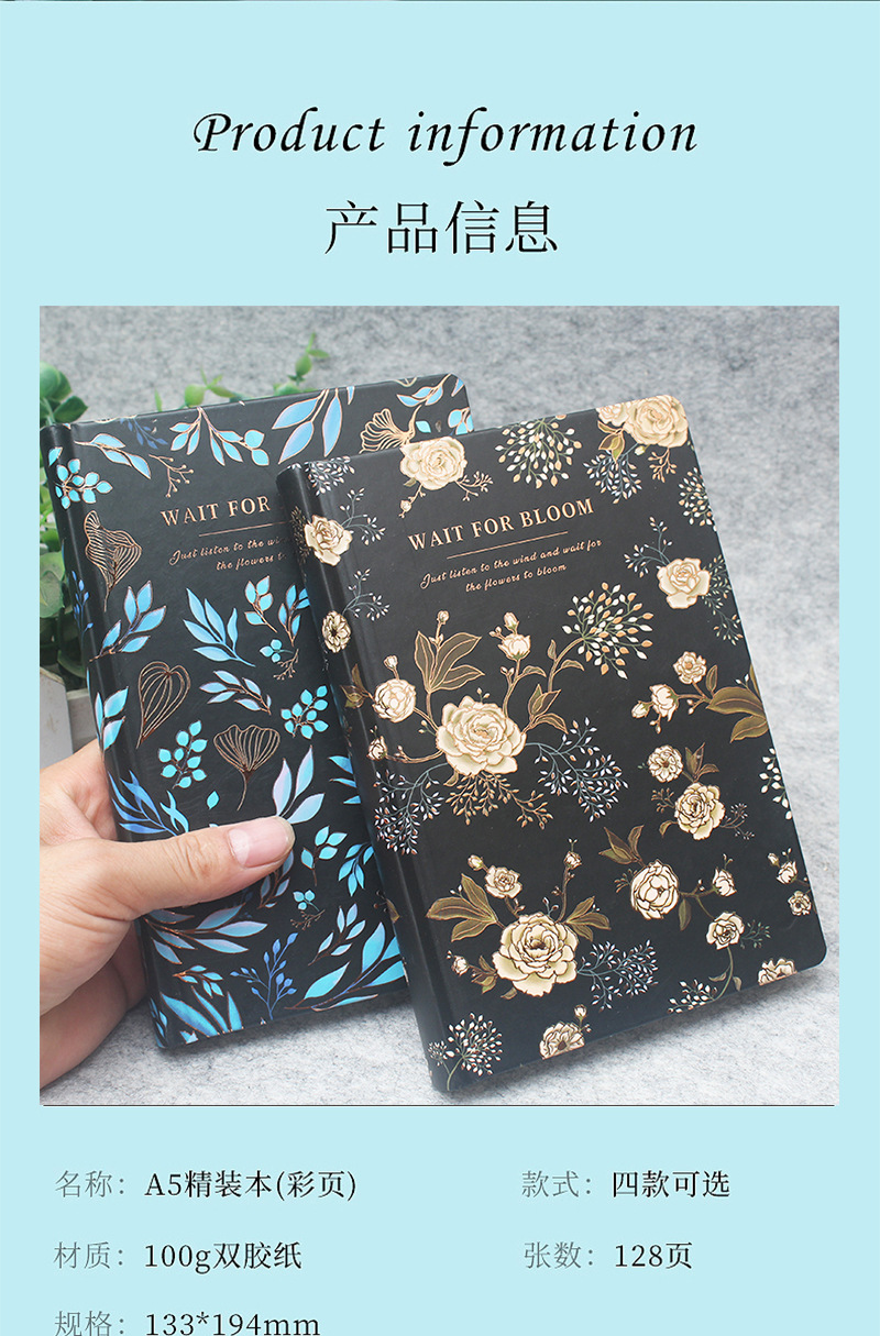 オリジナルの花手帳カラーページイラスト日記本少女心文芸精致クラフト紙ノートプレゼント本