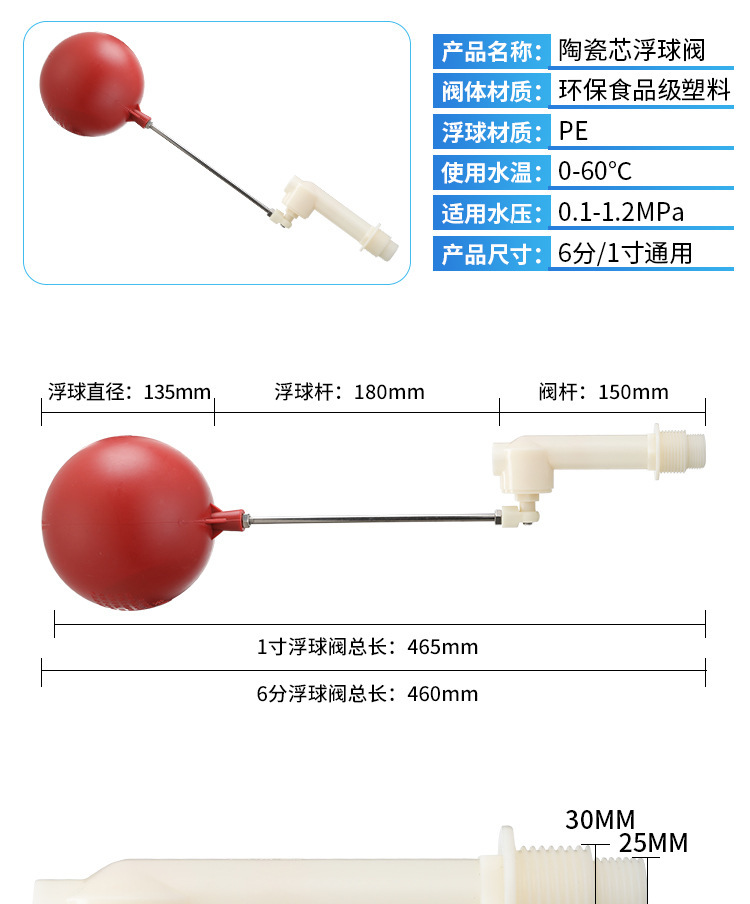 塑料浮球阀鱼缸自动补水器水桶水箱水塔水满自停开关水位控制器