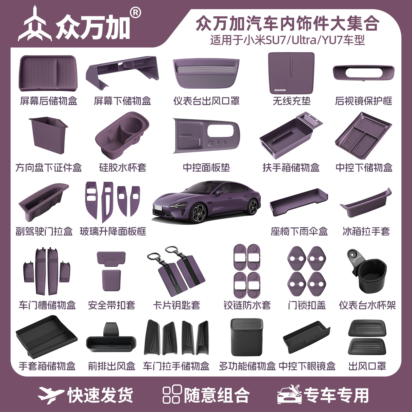 小米SU7の鍵カバーの創始版SU7のカードの鍵の保護の殻の霧の紫色の蘇7の保護のボタンに適用します。