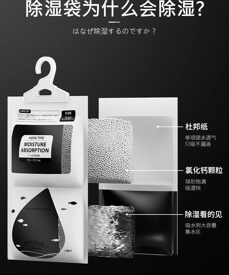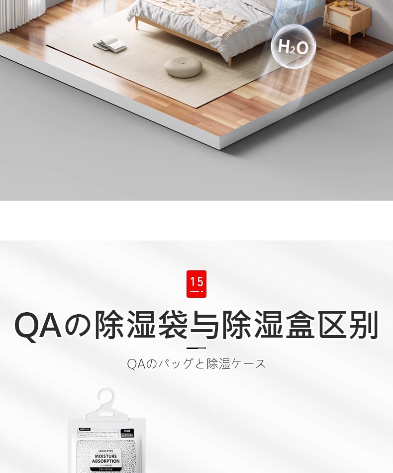 乾燥剤除湿バッグは湿気を吸収します 乾燥剤除湿バッグは湿気を吸収し、カビを除去し、湿気を防ぎます。