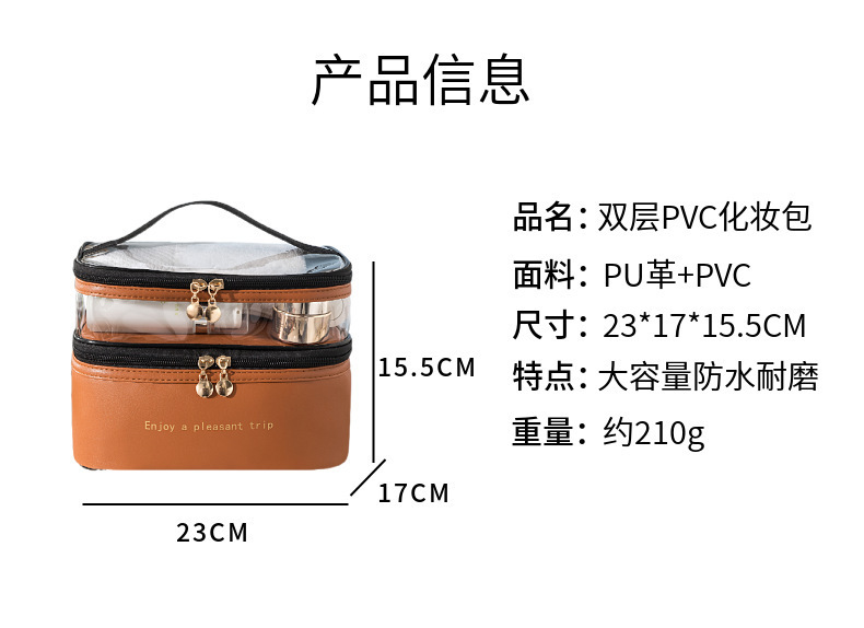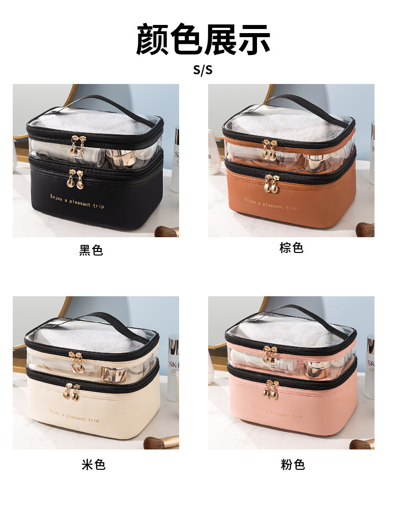 二重化粧バッグレディース大容量ポータブル水泳バッグシンプルな透明新作純色pu洗面収納バッグ