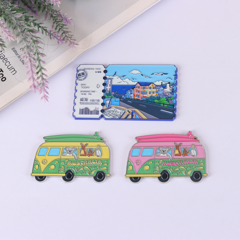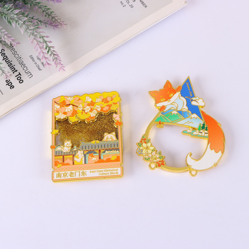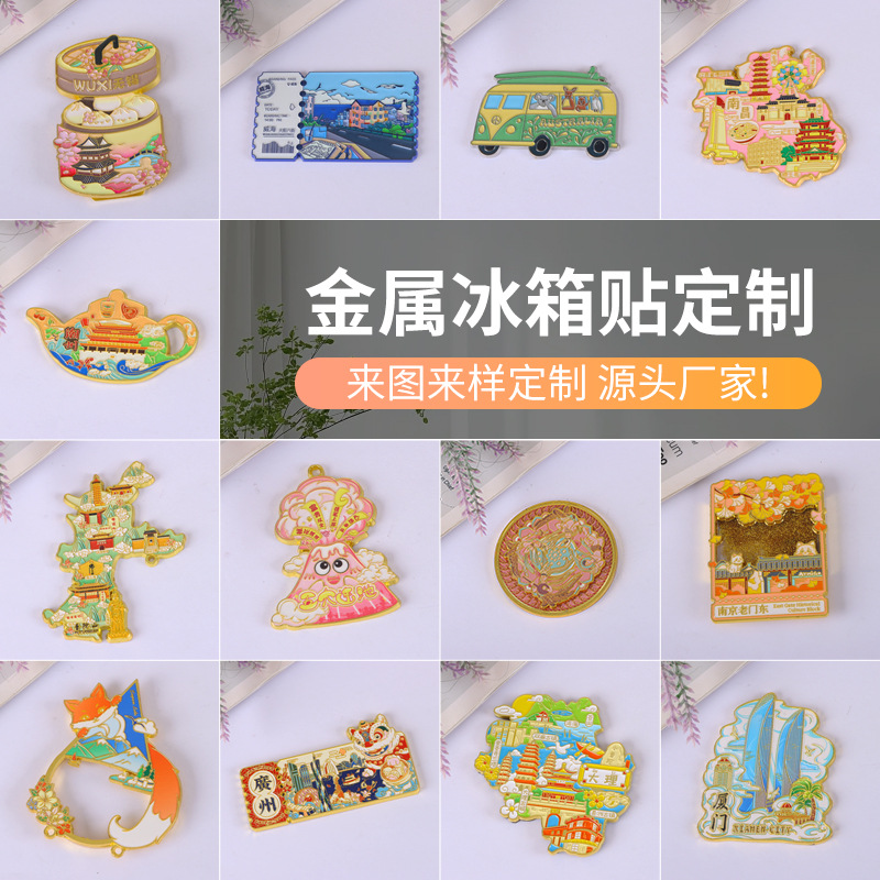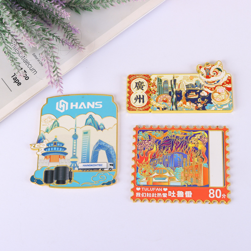 カスタマイズされた金属製冷蔵庫用マグネット、クリエイティブな都市景勝記念塗装金属製マグネット、カスタムメイドのエナメル漫画冷蔵庫用マグネット