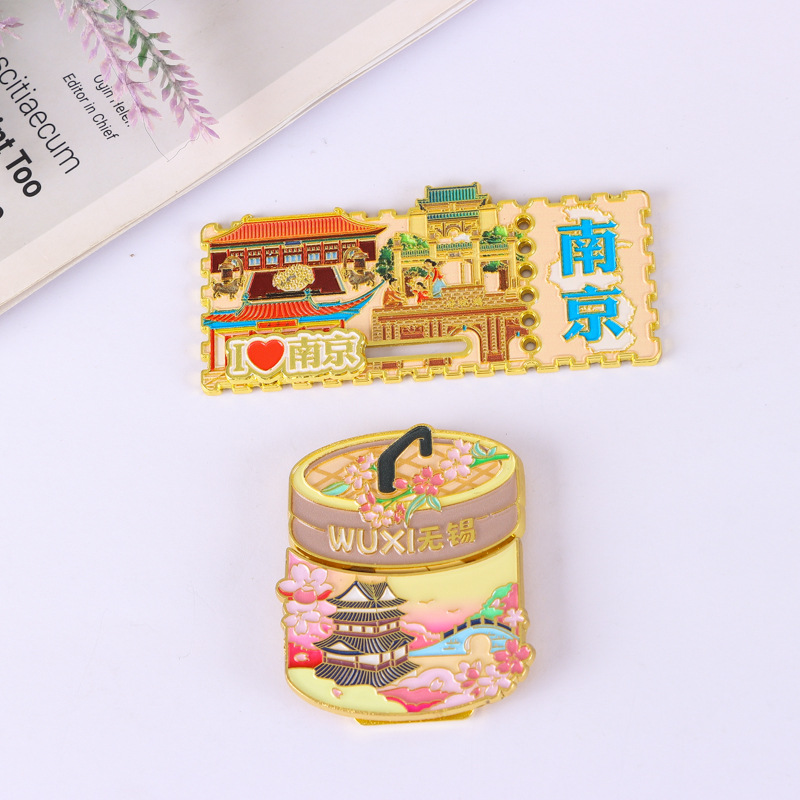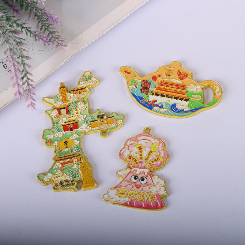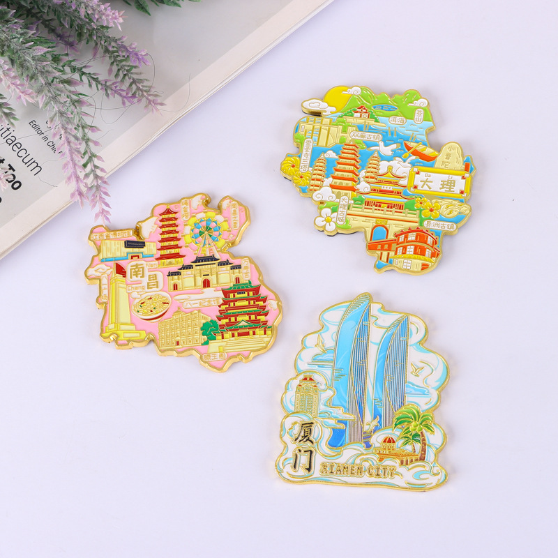 金属製冷蔵庫用マグネット、カスタマイズされた合金塗装磁気ステッカー、景勝地用カスタマイズされた冷蔵庫用マグネット、建築周辺の文化的で創造的な冷蔵庫用マグネット
