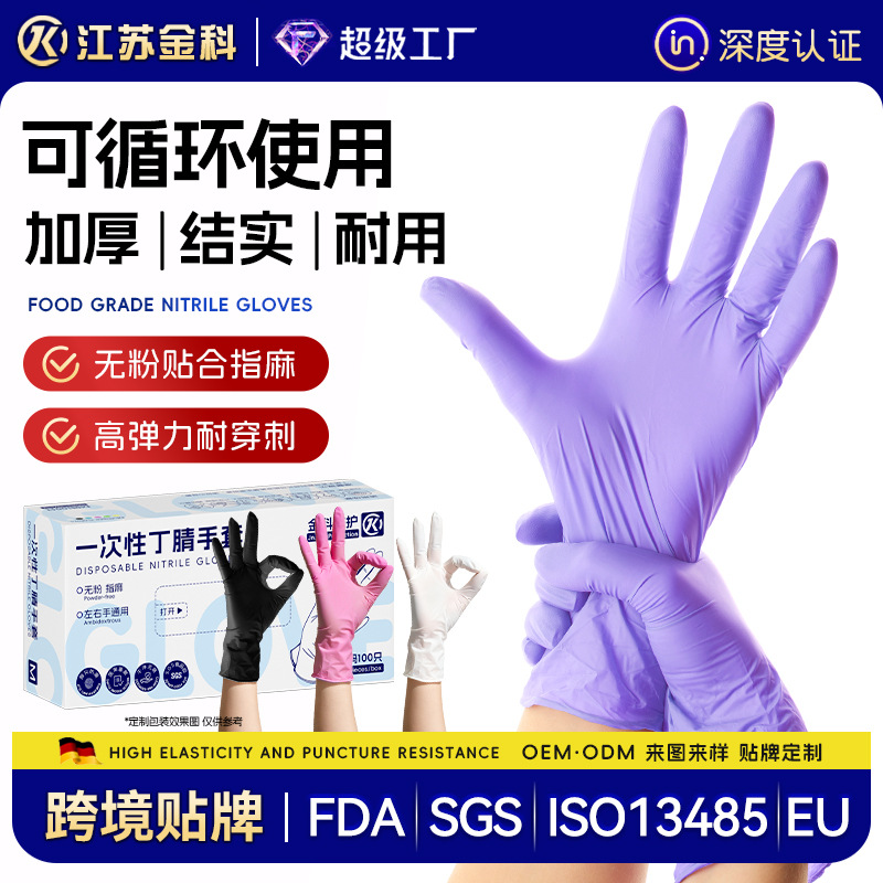 純ニトリル使い捨て手袋、ゴム製、耐久性、ニトリル保護、高弾性ラテックス、作業用、労働保護、食品グレード、防水