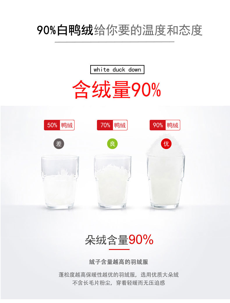 这款的羽绒用的是含绒量90%的90%白鸭绒哦~~90%白鸭绒!!!