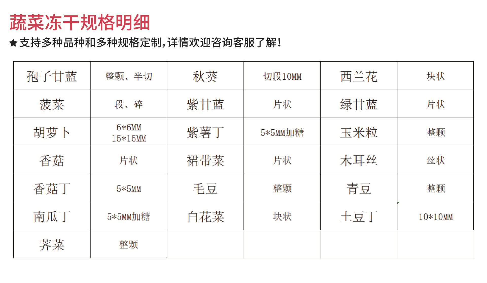 フリーズドライ胞子キャベツ(砂糖半分無添加)【20g】,フリーズドライオクラセグメント(15~25mm)[20g],フリーズドライほうれん草セグメント(砂糖無添加30~50mm)[20g],フリーズドライ大豆粒(砂糖無添加丸ごと) [20g],フリーズドライインゲン(砂糖無添加丸ごと) [20g],フリーズドライブロッコリー(無糖20~25mm)[20g],フリーズドライキャベツ(砂糖無添加30~50mm)[20g],フリーズドライにんじん切り(砂糖6×6mm入り)[20g],フリーズドライニンジン(砂糖無添加 15×15mm) [20g],フリーズドライパープルキャベツ(砂糖無添加変則フレーク)【20g】,フリーズドライグリーンキャベツ(砂糖無添加変則フレーク)【5g】,フリーズドライ紫芋角切り(砂糖入り5×5mm)[20g],フリーズドライきのこ(砂糖無添加 5×5mm) [20g],フリーズドライマッシュルームスライス(砂糖無添加厚さ5~6mm)[20g],フリーズドライかぼちゃの角切り(砂糖5×5mm入り)[20g],フリーズドライトウモロコシ粒(砂糖入り丸ごと) [20g],フリーズドライ角切りポテト(砂糖無添加 10×10mm) [20g],フリーズドライ小豆(砂糖無添加丸ごと) [20g],フリーズドライマシューダイス(無糖6×6mm)[20g],フリーズドライわかめ(砂糖無添加変則)【20g】,フリーズドライ菌糸(砂糖無添加、幅5mm)[20g],フリーズドライナギ(砂糖無添加)【5g】,フリーズドライコリアンダーセグメント(50~60mm)[2g](とても軽い),フリーズドライパールホースシュー(砂糖無添加丸ごと) [20g],フリーズドライレタススライス(砂糖フレークなし)[20g],フリーズドライアリンガメの角切り(砂糖なし 10×10mm) [20g],フリーズドライ太郎(無糖6×6mm)[20g],フリーズドライネギ 10g,フリーズドライガーリックスライス(砂糖無添加フレーク)【10g】
