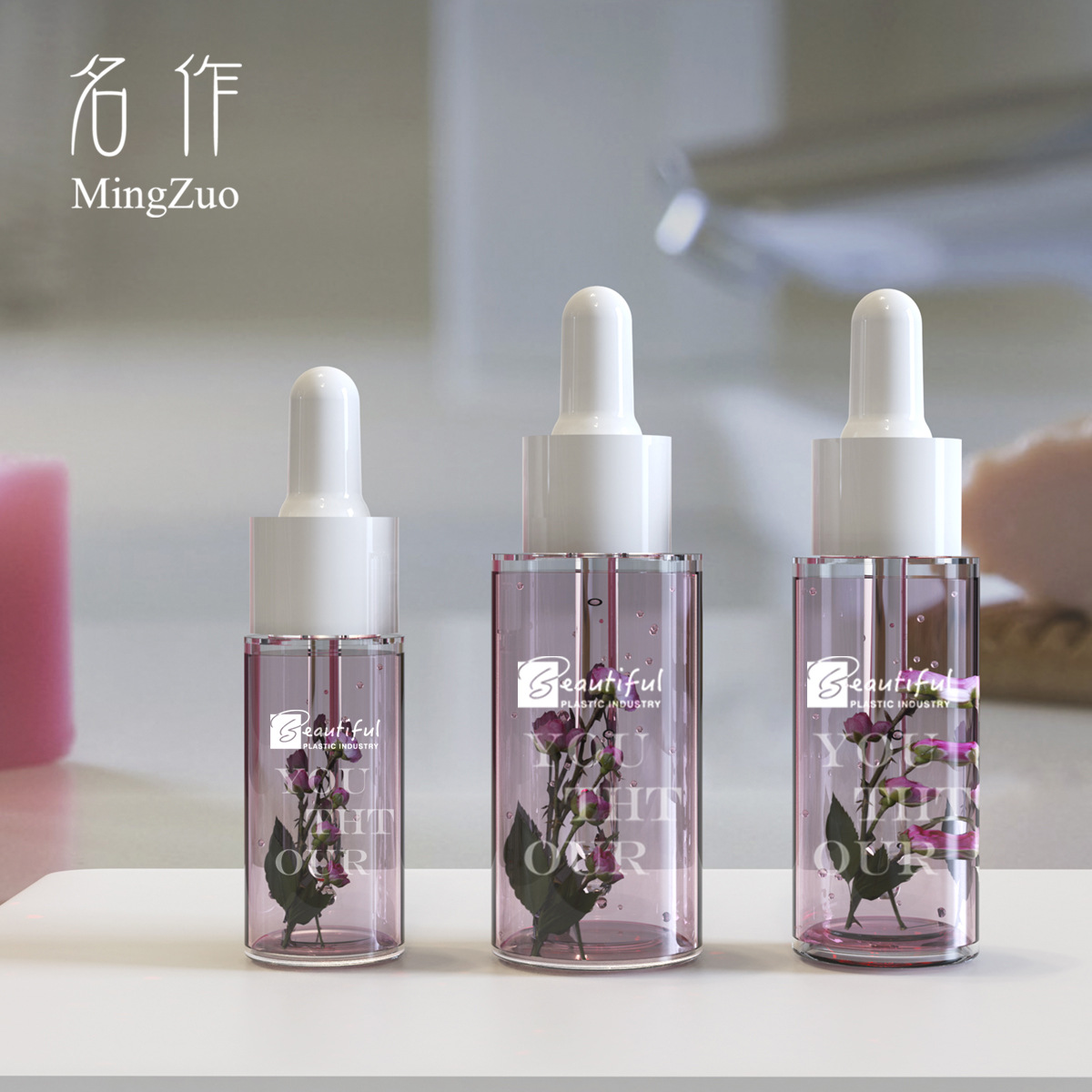 12ml 30ml 40ml透明平肩精華液瓶に分けてPETを入れてゴムの頭の厚い壁の精油を取って瓶を挿します。