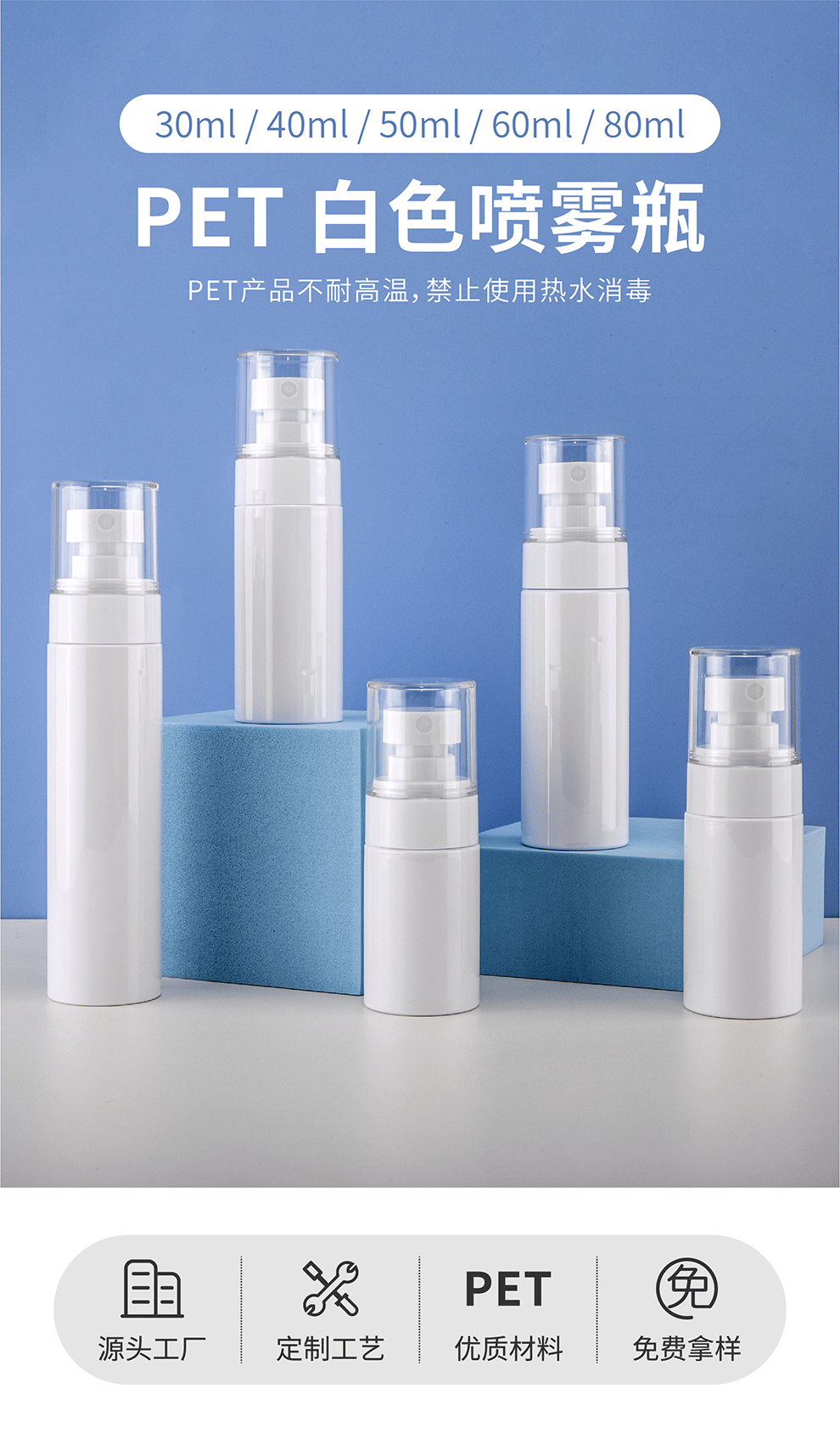 现货PETG定制喷雾瓶旅行便携分装瓶防晒喷雾卸妆水酒精超细喷雾