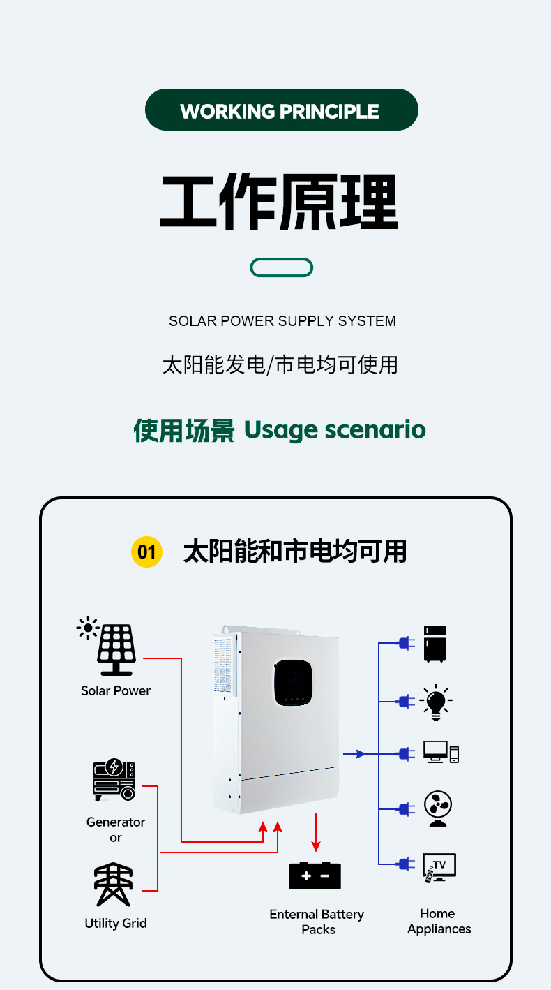 家庭用太陽光発電システムコンプリートセット 220V オンラインオフグリッドエネルギー貯蔵および逆制御オールインワンマシンエアコン電源供給
