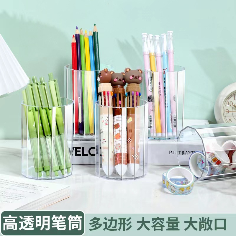 透明アクリル筆筒多面文房具収納桶オフィスデスクトップ収納化粧ブラシ収納桶