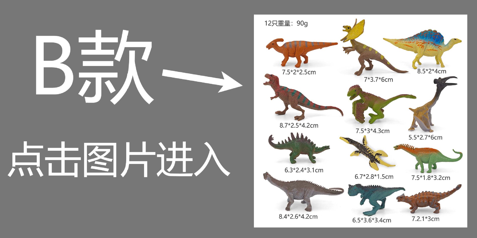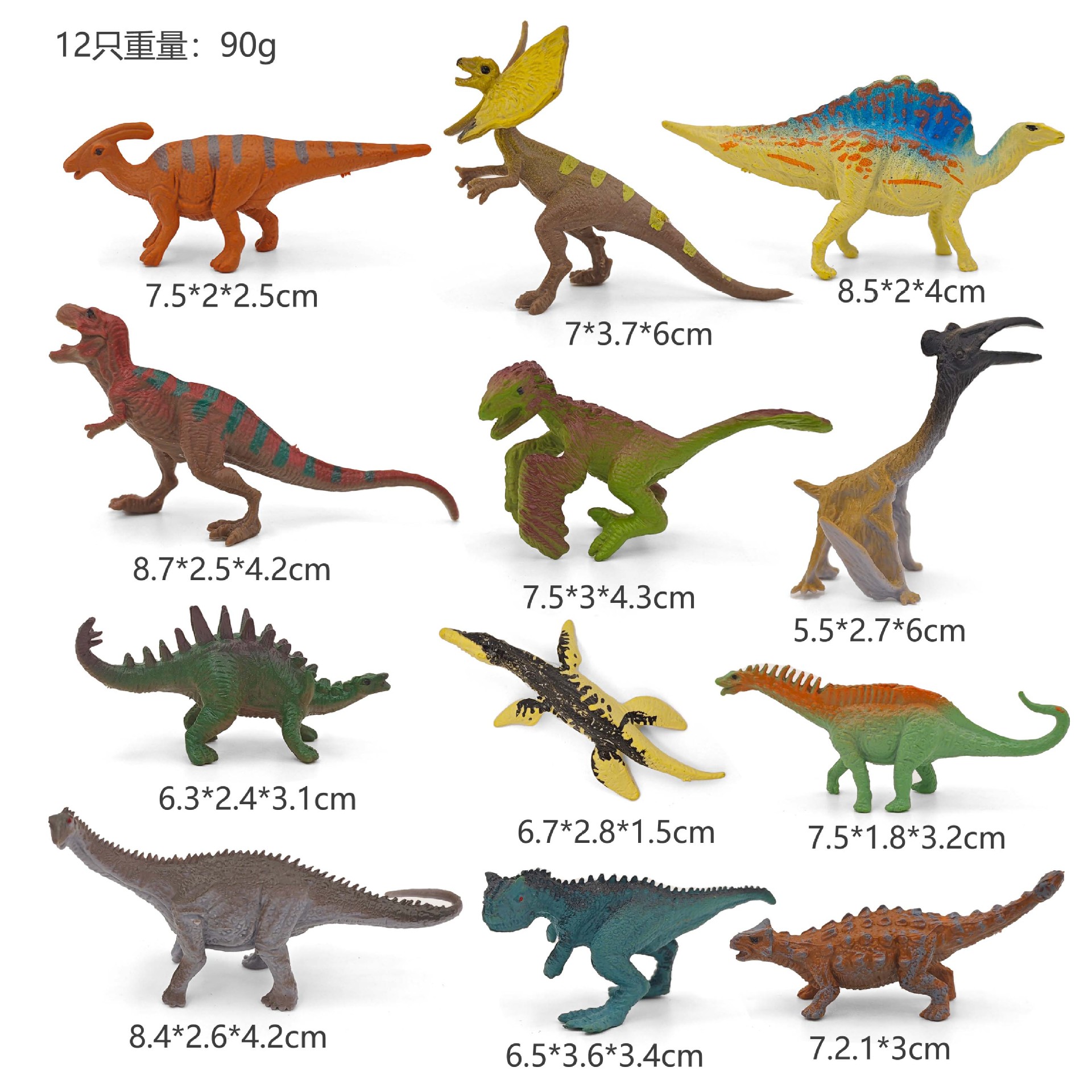 【产品名称】:中号A款12只彩绘小恐龙