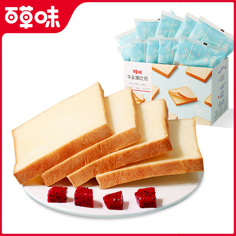包郵便百草味牛乳柔らかいトースト500g牛乳トースト朝食食品パン全箱ケーキレジャー間食