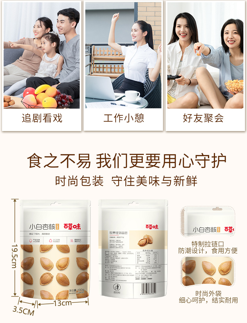 公式旗艦店百草味小白杏100gナッツスナックロット小売