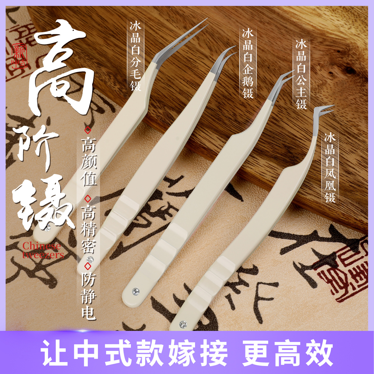 高阶新中式嫁接睫毛镊子 美睫店师专用 冰晶白高精密睫毛开花夹子