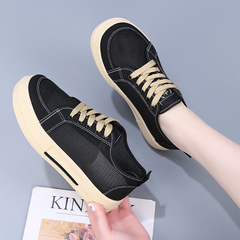 女性用の新しい夏のメッシュシューズ、女性用の通気性のあるメッシュキャンバスシューズ、ファッショナブルで多用途な学生靴、女性用の柔らかい底の韓国風スニーカー