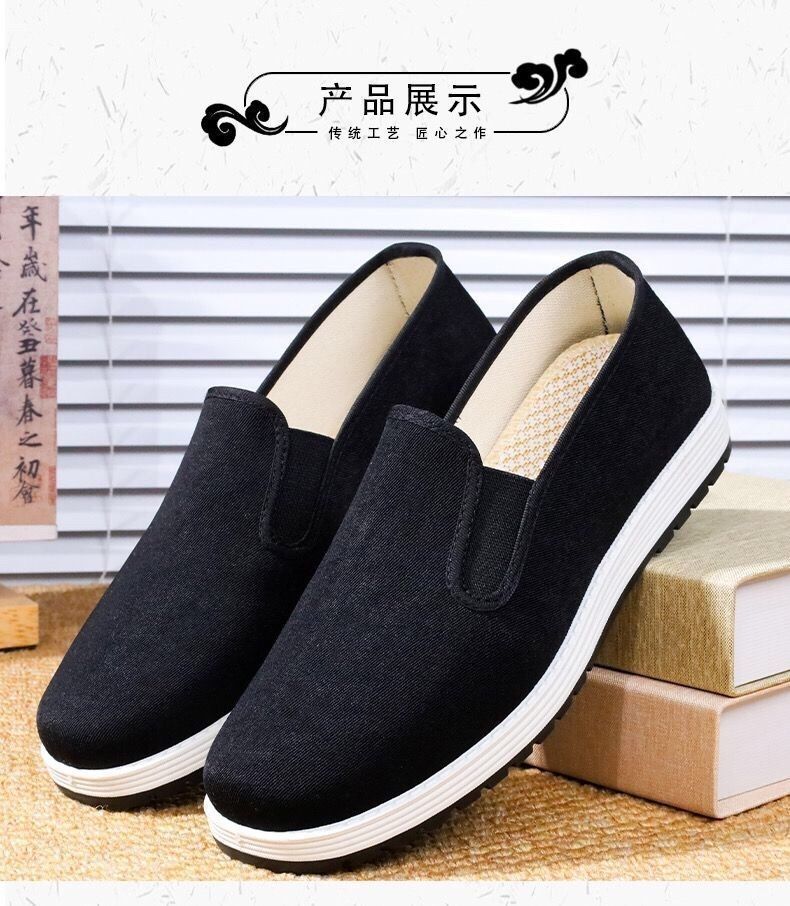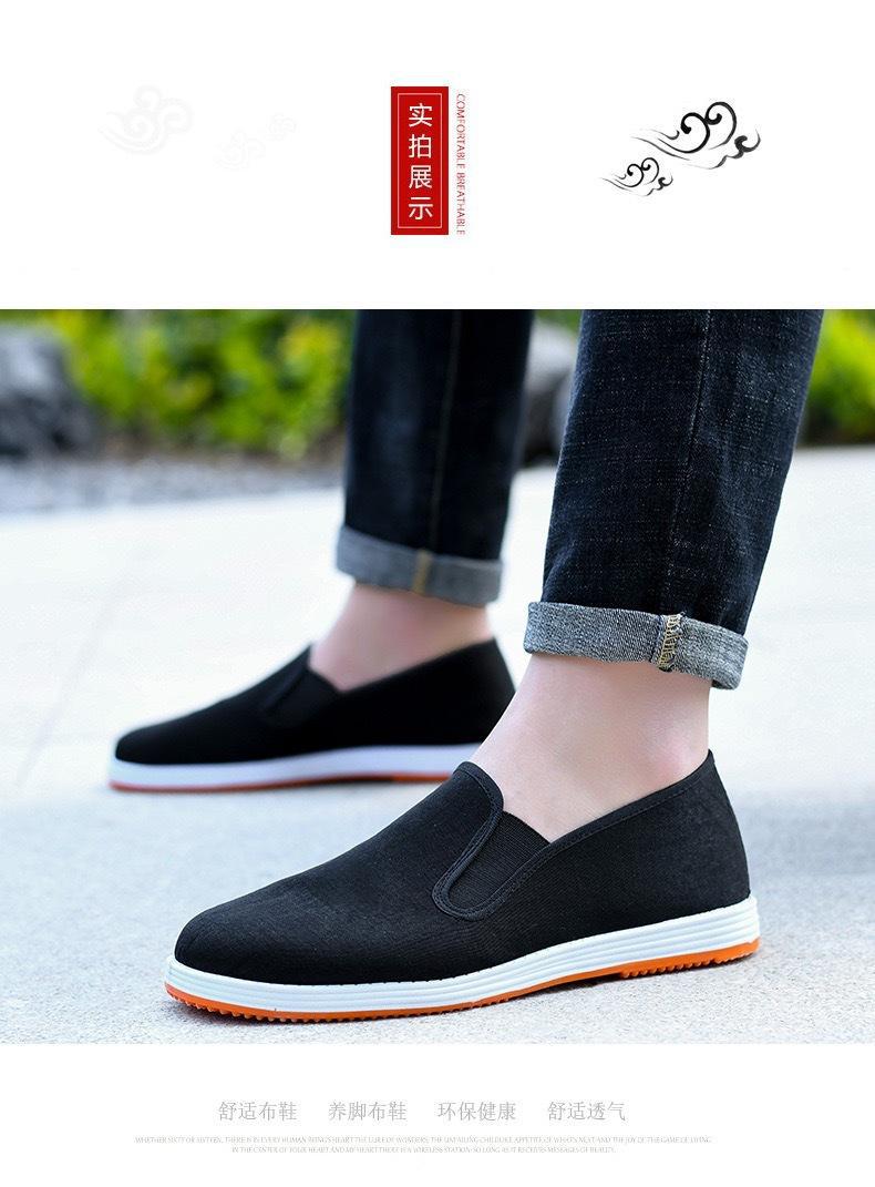 古い北京布靴メンズ春と秋手作り千層底運転オフィススリッポンカジュアル通気性カジュアルお父さん靴