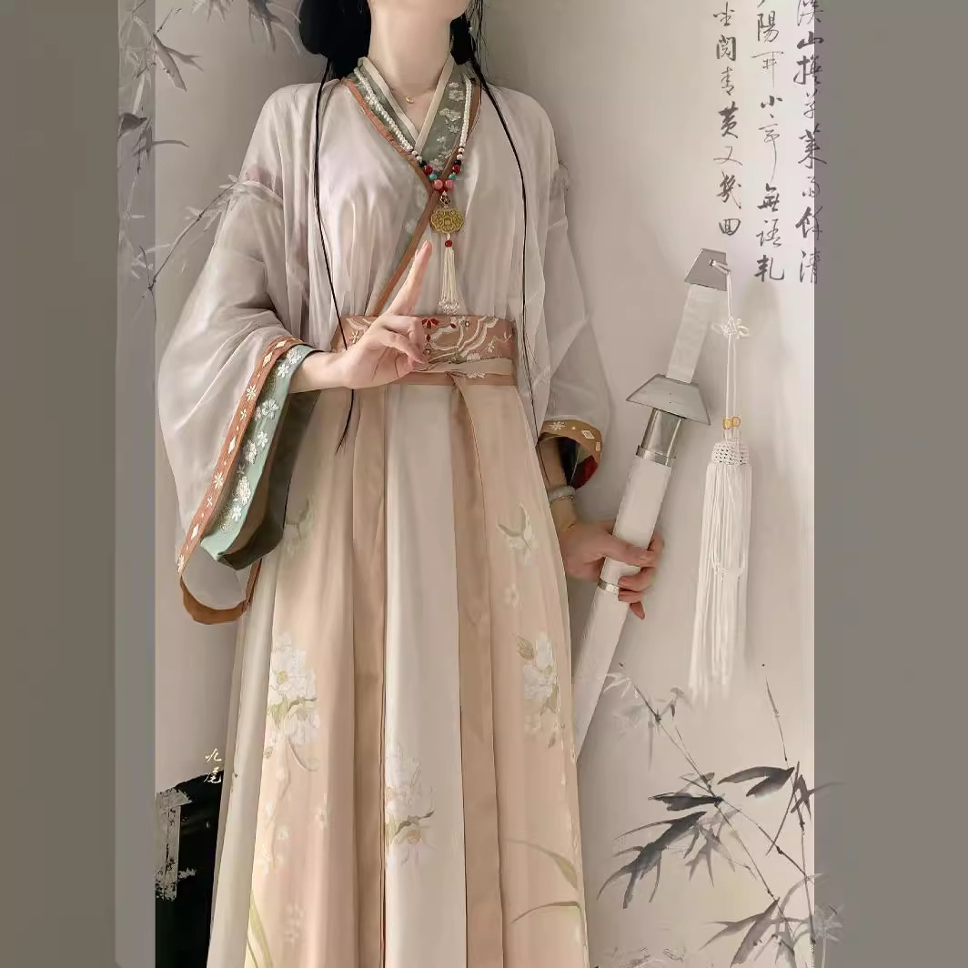 オリジナル 2025 新しい漢服女性涅南北朝復元魏と晋スタイルの大きな袖クロスカラー特殊な形状のエプロン破れたスカート