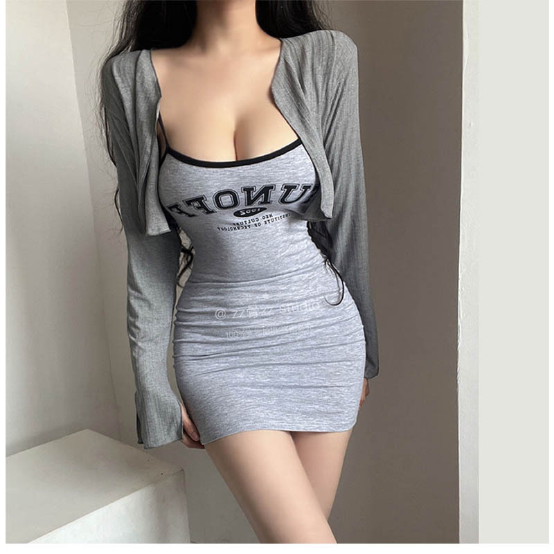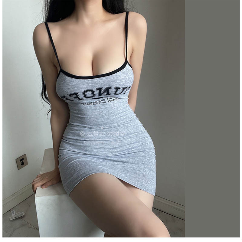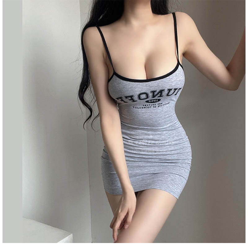 純欲風セクシーな胸の低い襟のサスペンダーのワンピースの女性の夏の新型のデザイン感はタイトで痩せています。