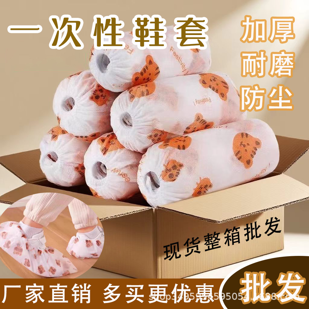 卡通无纺布鞋套家用一次性加厚防滑脚套室内耐磨耐脏成人印花鞋罩