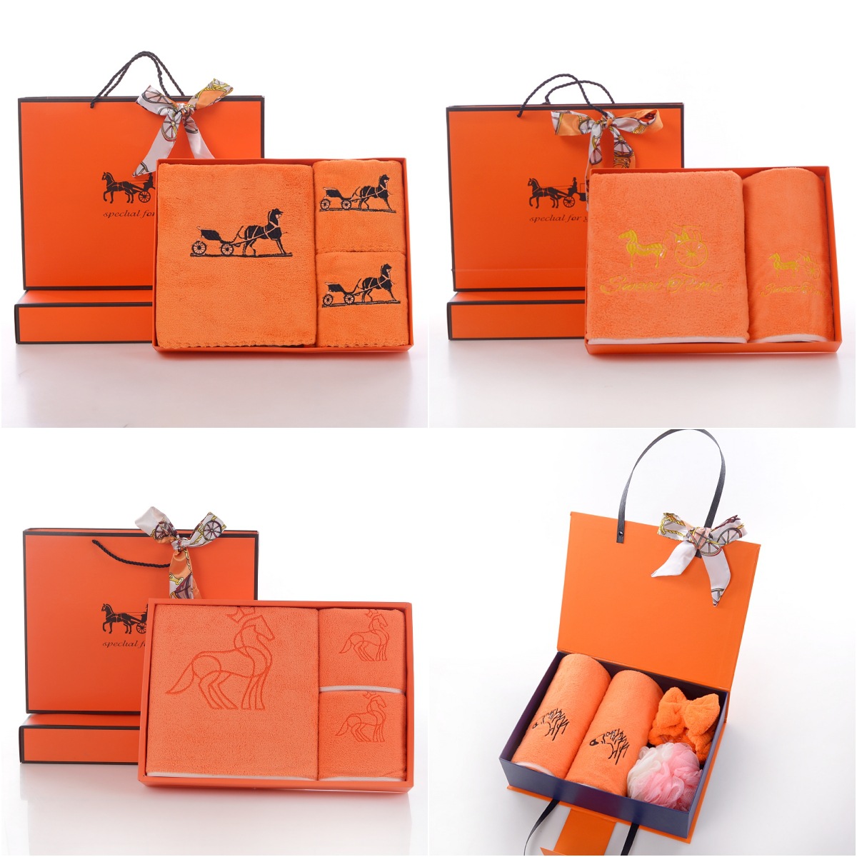 コーラルベルベットタオルギフトボックスセット3点セット会社ビジネスイベントギフト記念品カスタム刺繍プリントロゴ