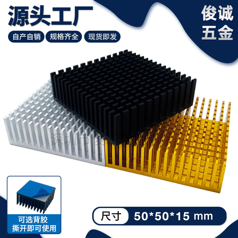 アルミヒートシンク50*50*15mmチップ電子放熱器熱伝導シール付き歯破切ヒートシンク