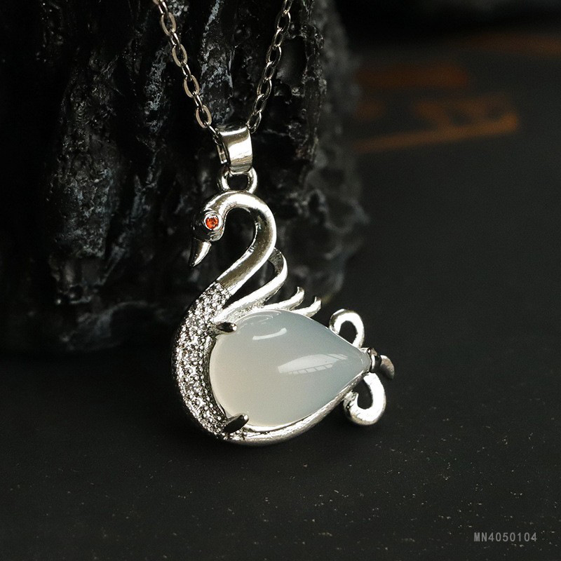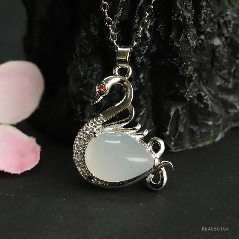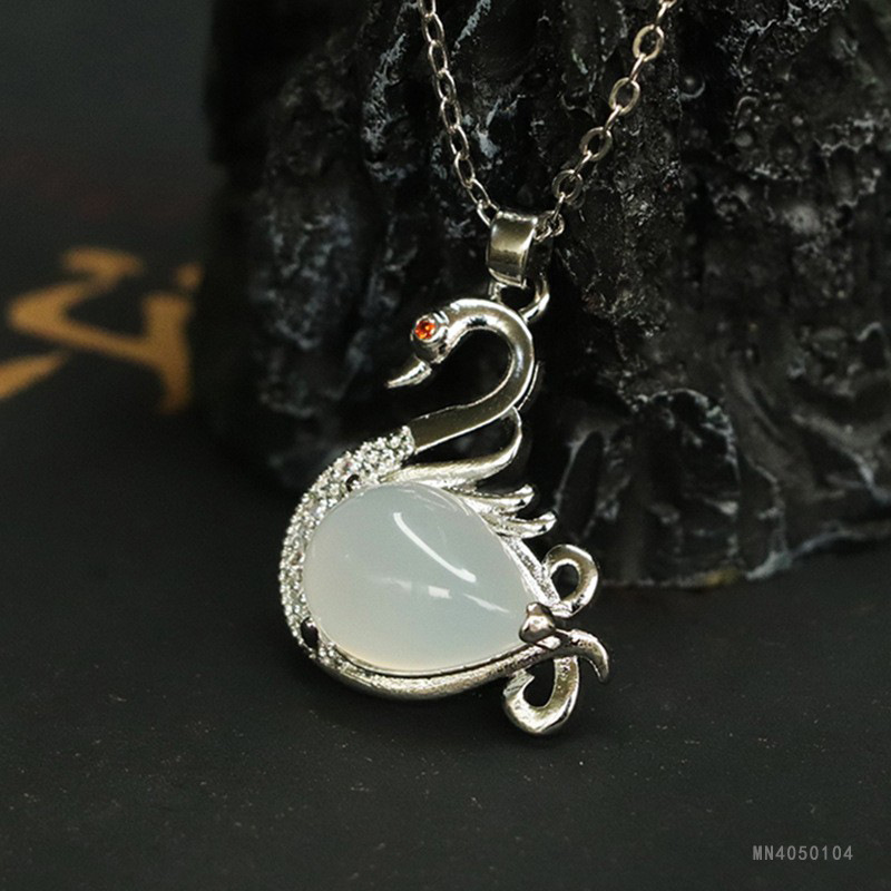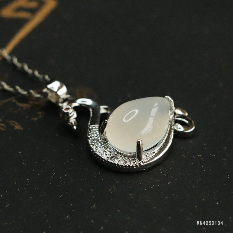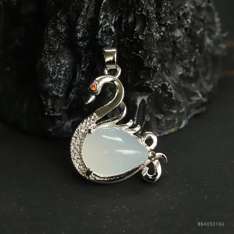 钰天然氷種白瑪瑙ペンダント玉髄白鳥ネックレスアクセサリー工場卸売り代理代理MN4050104
