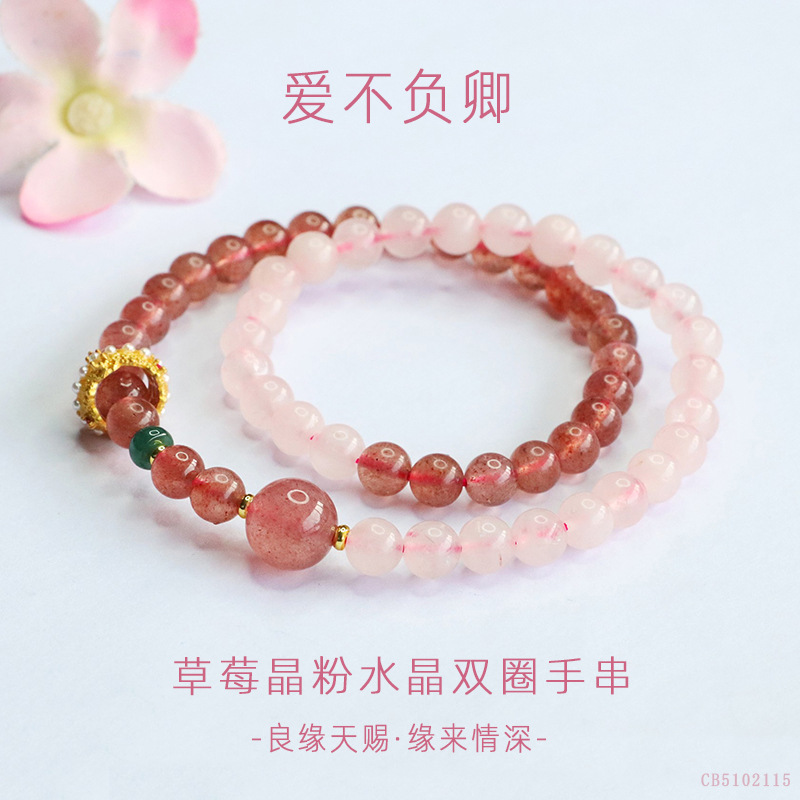 眷钰 天然草莓晶双圈手串粉水晶手链女直播寺庙文创批发CB5102115