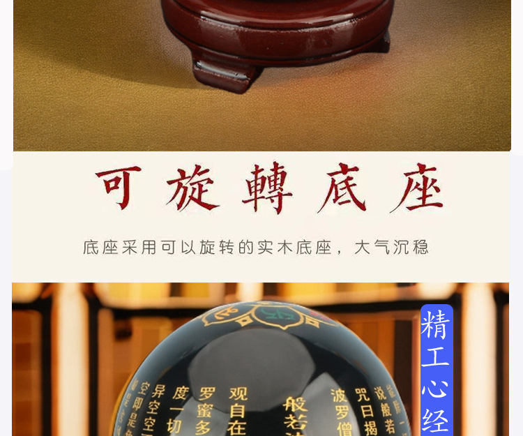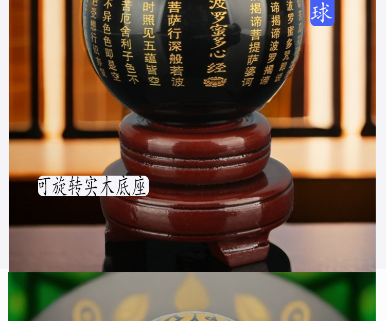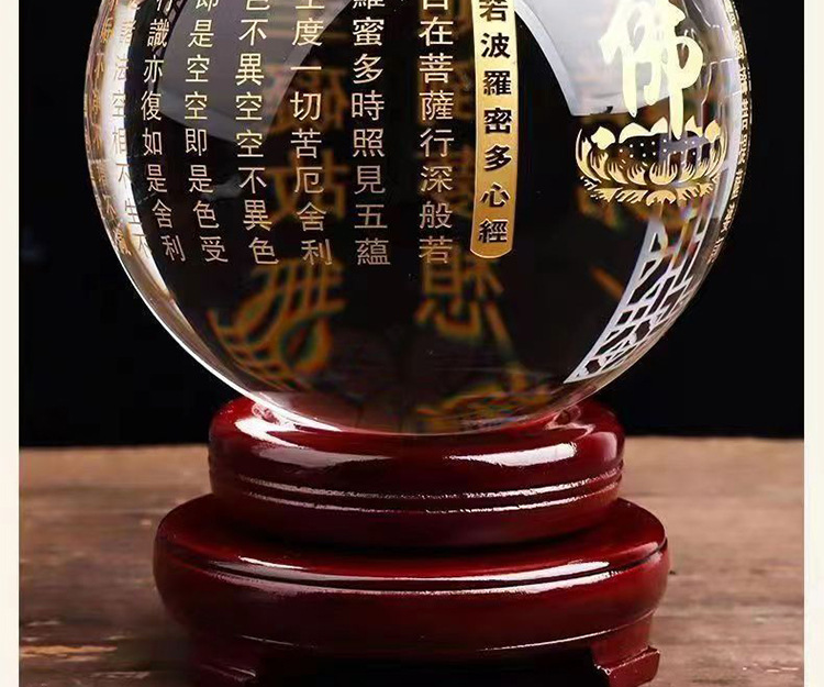 批发水晶心经球雕刻佛经文般若心经六字真言风水球供佛供桌玄关