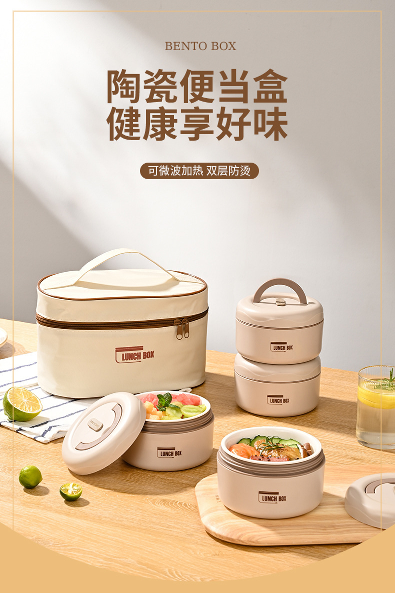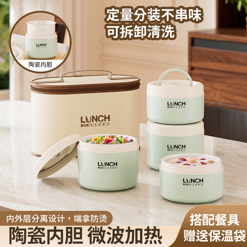 保温饭盒可微波炉陶瓷内胆新款便当盒学生上班族便携多层餐盒汤杯