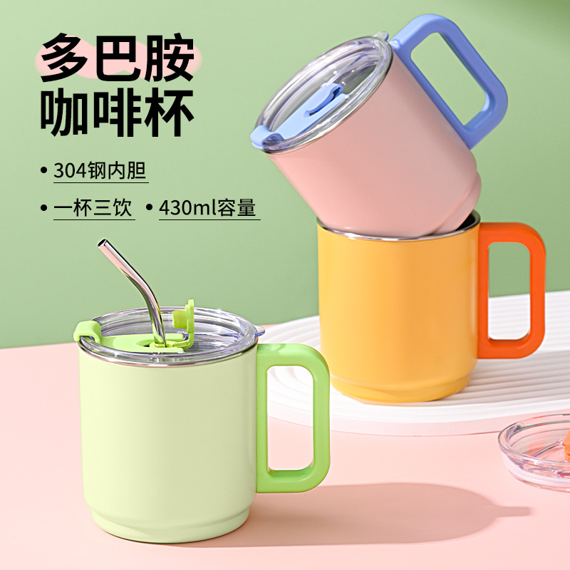304 ステンレス鋼ドーパミンコーヒーカップオフィスワーカーポータブルカップ漫画かわいいかわいいストローカップポータブルカップ