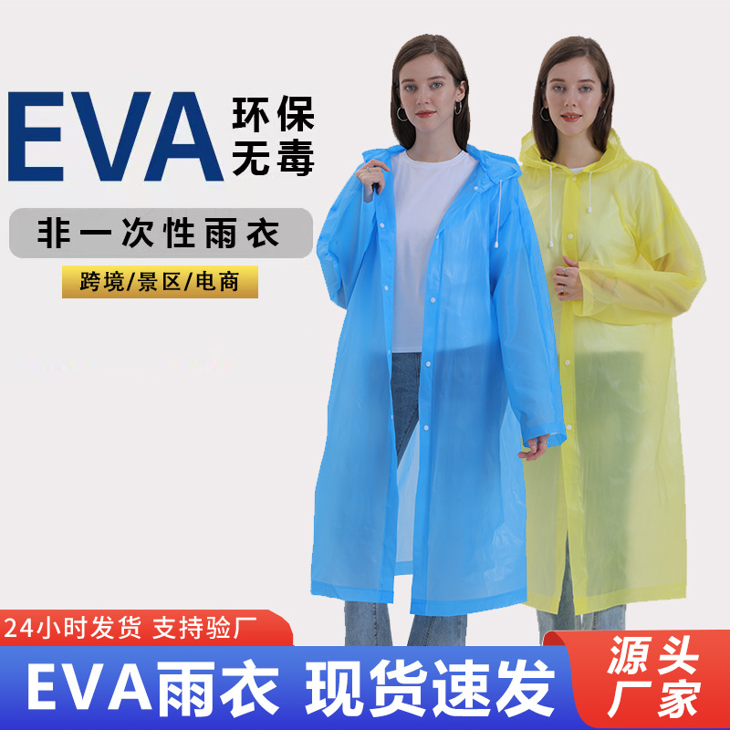 卸売EVAレインコート、使い捨てではないレインコート、厚手で長め、大人と子供用、アウトドア旅行用ワンピースレインコート、ハイキング用レインコート