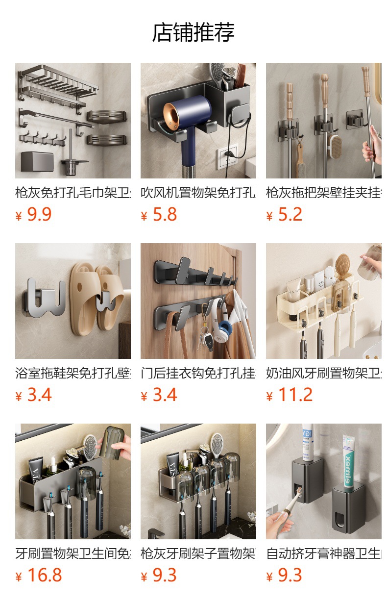 浴室の靴棚トイレのトイレのドアの後に穴を開けないで壁掛け式の水の物を掛けて靴を掛けて神器を収納します。