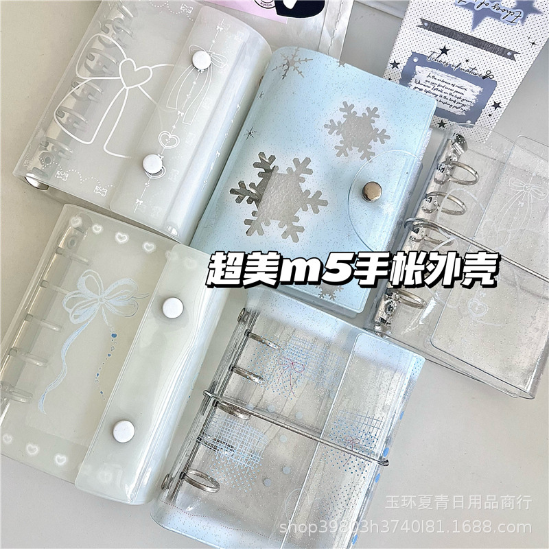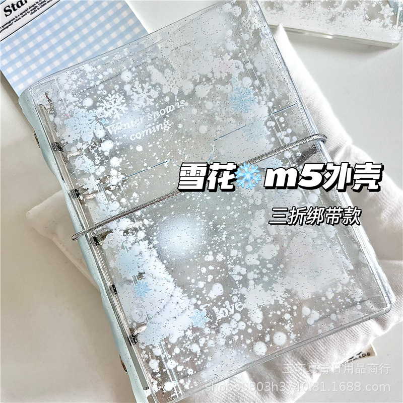 Ins風オリジナルキラキラ透明雪花ストラップm 5バインダー手帳pvcソフトシェル単ボタン日記帳カード帳
