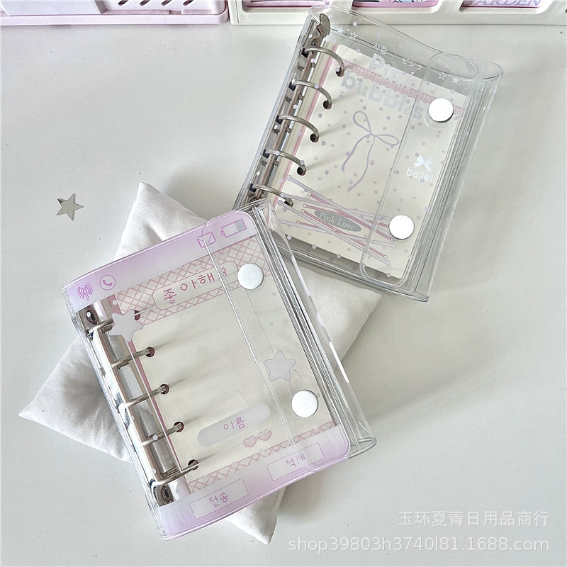 オリジナル蝶結び透明クリーム白m 5手帳ins少女心PVCバインダーノートm 5カード本カバー