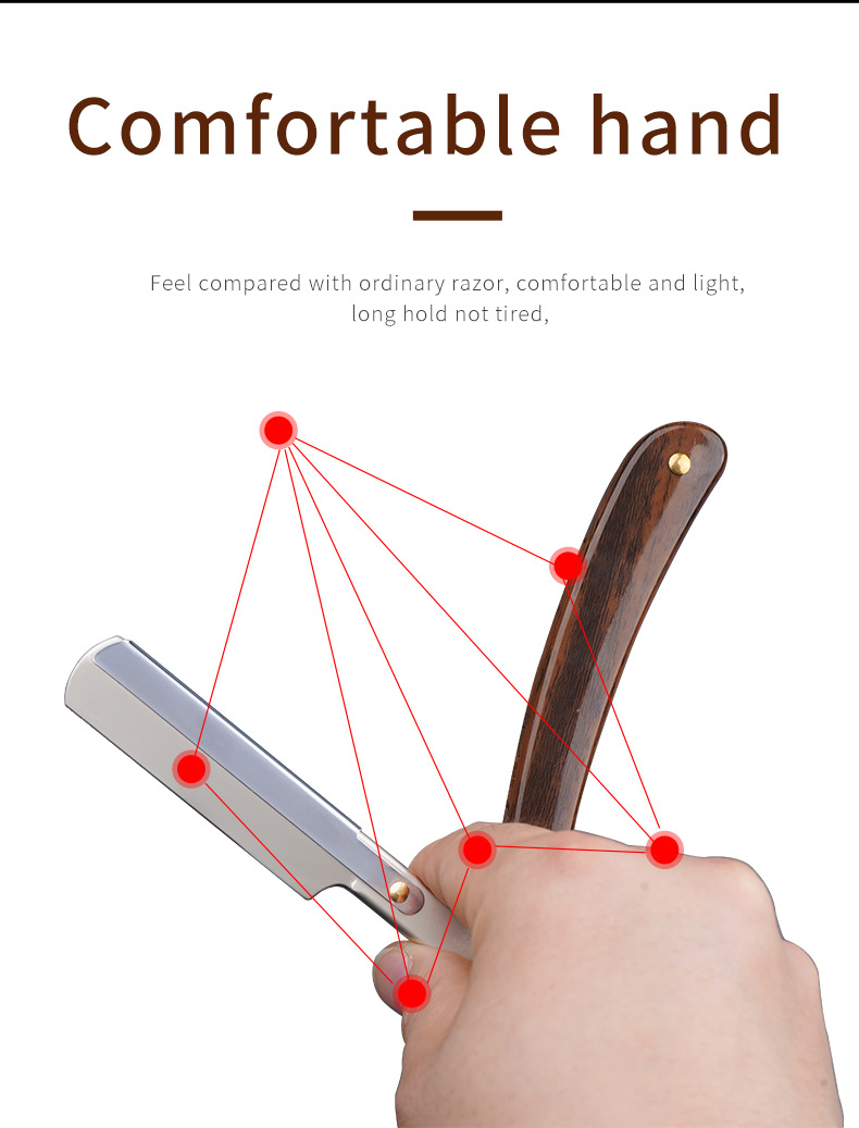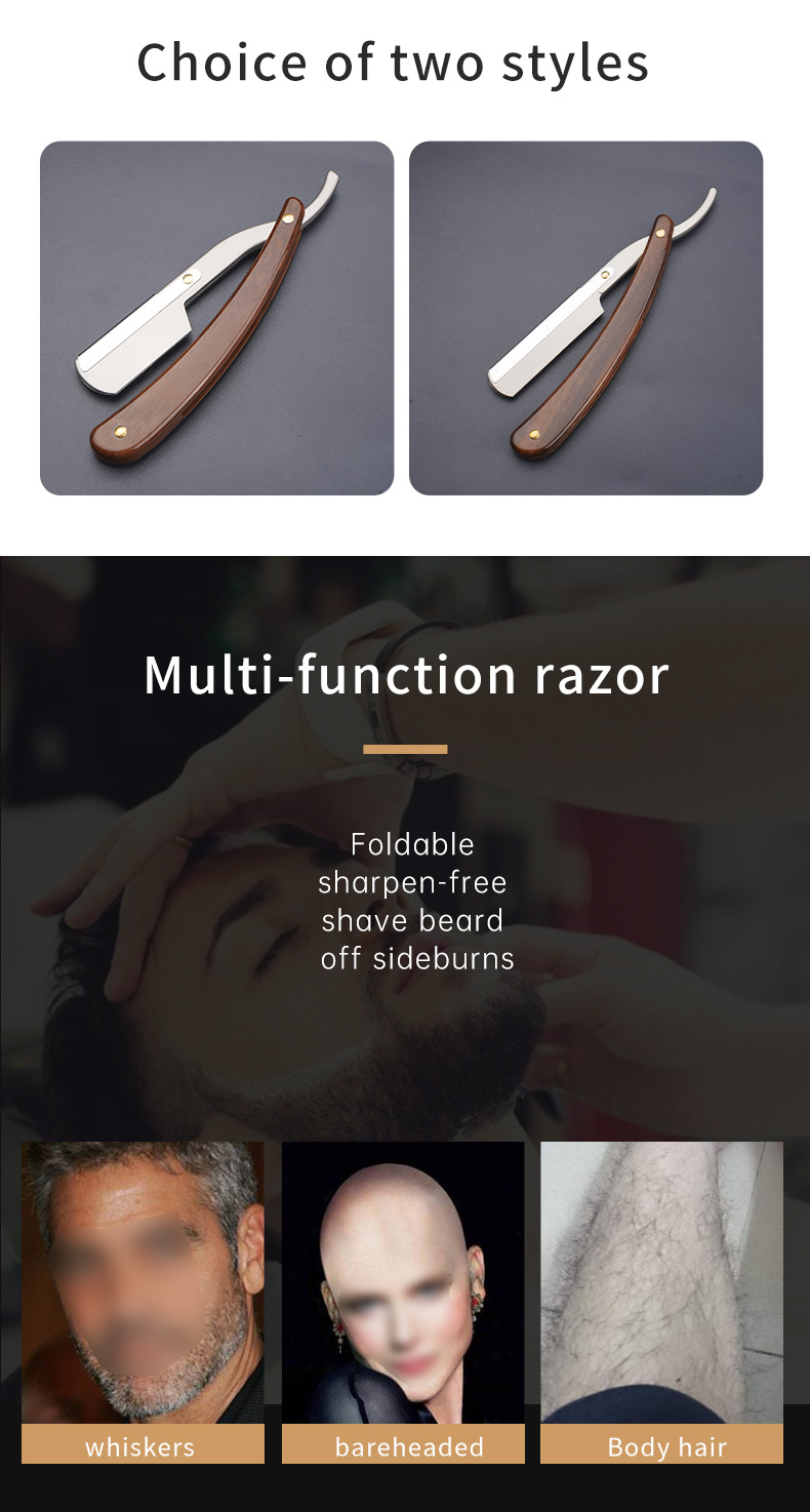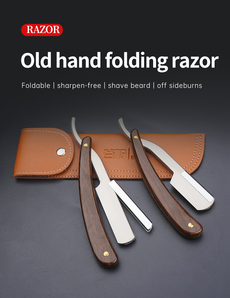 クロスボーダー手動かみそり実木折り畳みかみそり旧式の髭剃り眉毛修理刀理髪刀は顔を修理します。