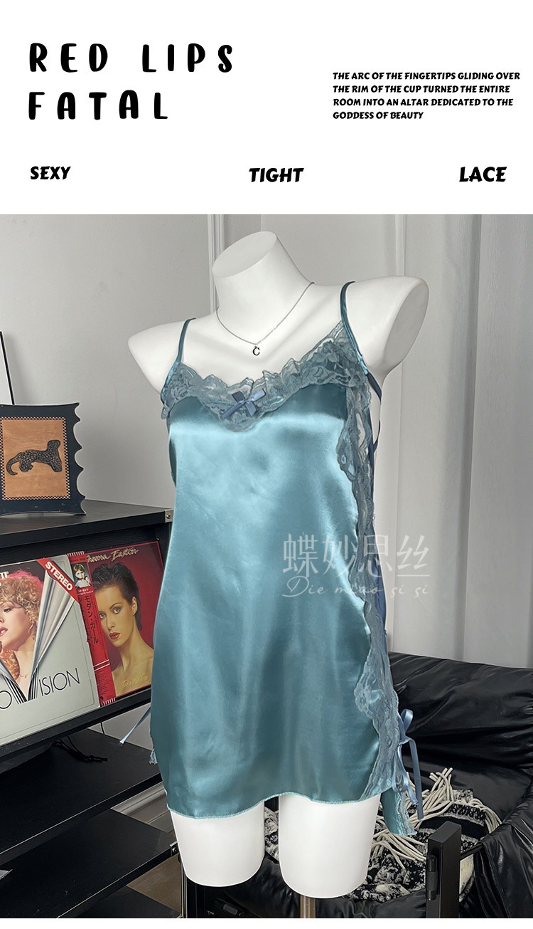 蝶妙思 性感エロティックなパジャマ 新商品 キャミソール スリット入りナイトドレス バックレス スリット入りナイトドレス 卸売 A046
