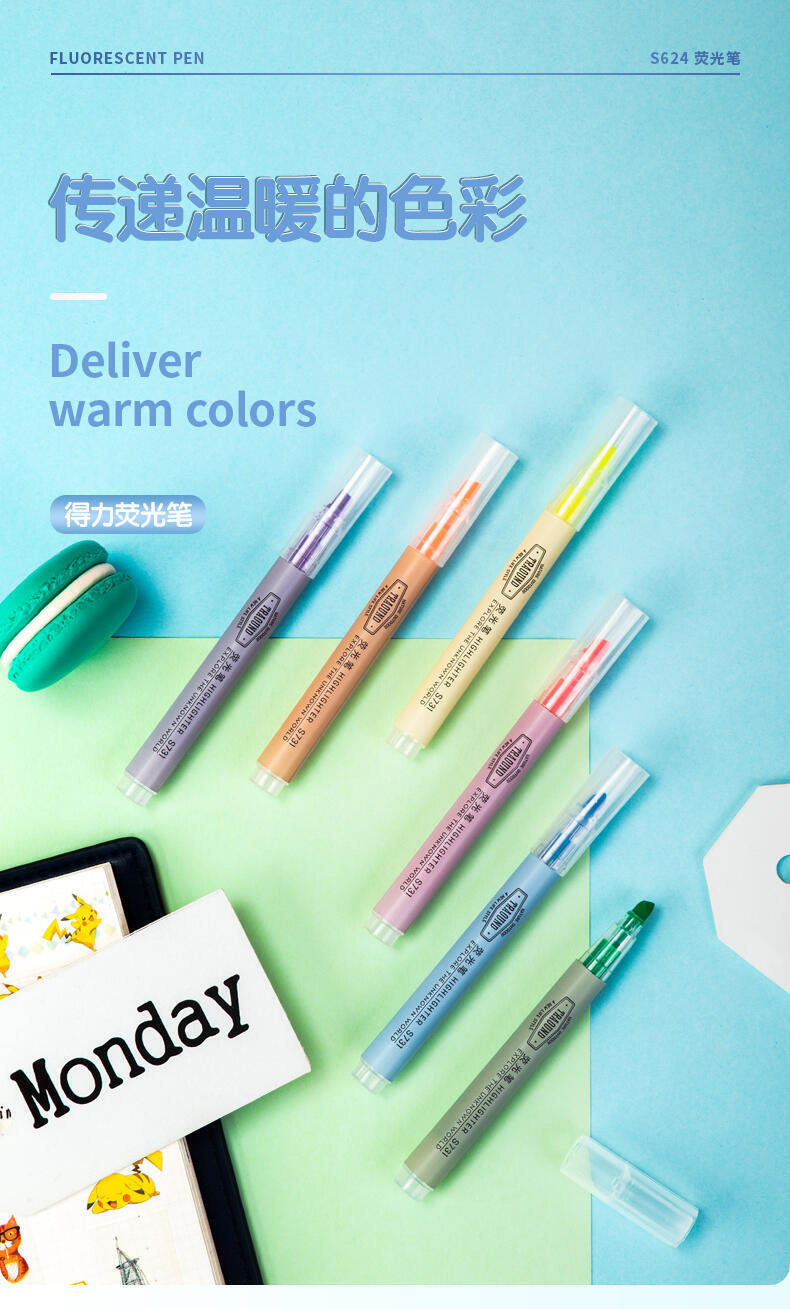 有力s624蛍光ペンセット蛍光マークペン学生用重点淡色大容量手帳専用ペン