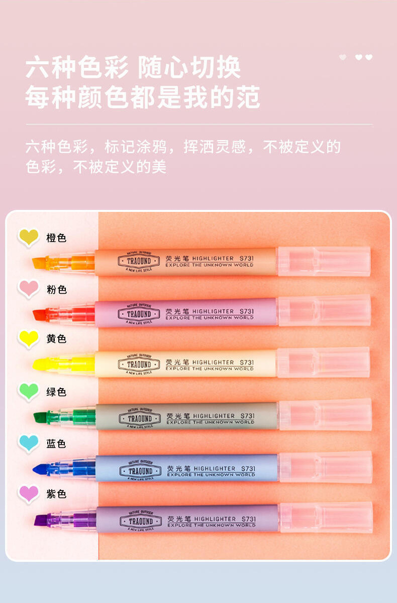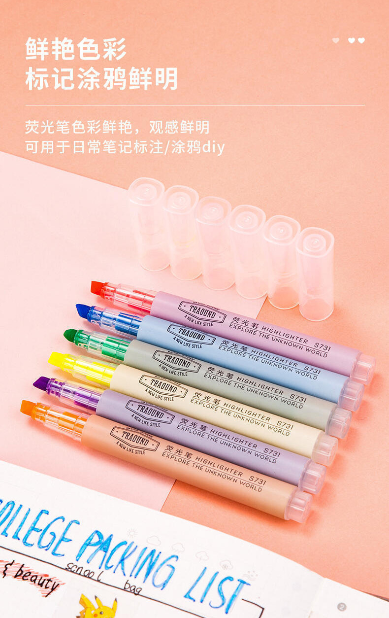 有力s731蛍光ペン斜頭マーカーペン重点薄いカラーペン学生用試験目立つマーカーペン