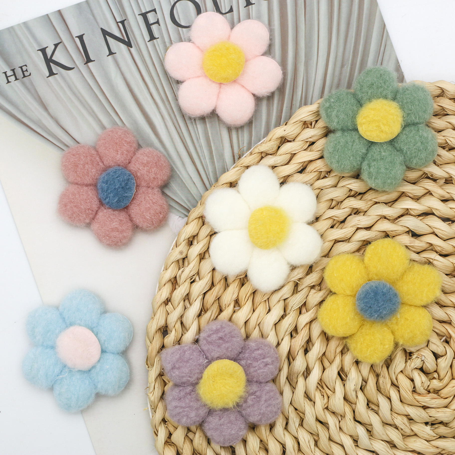 小清新毛绒五瓣花朵服装配件 diy可爱儿童发饰鞋帽包包装饰辅料