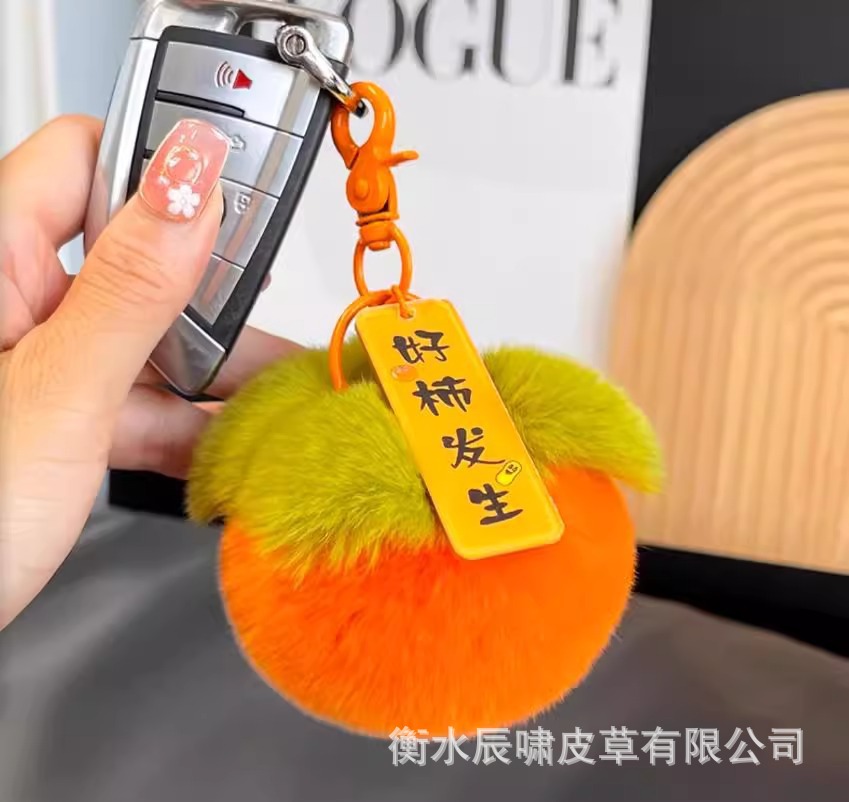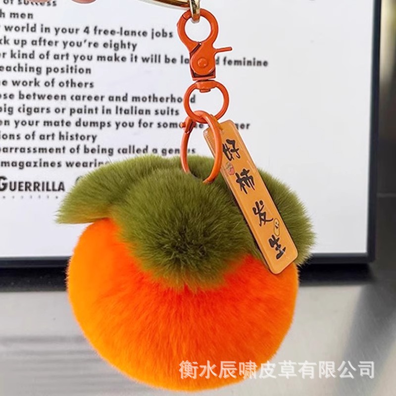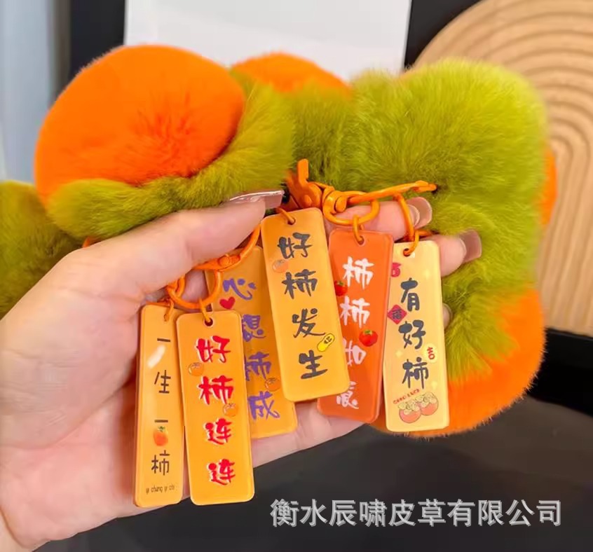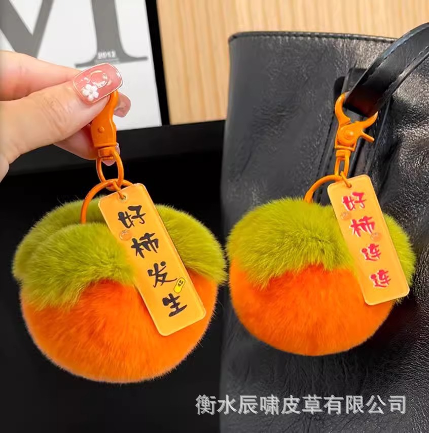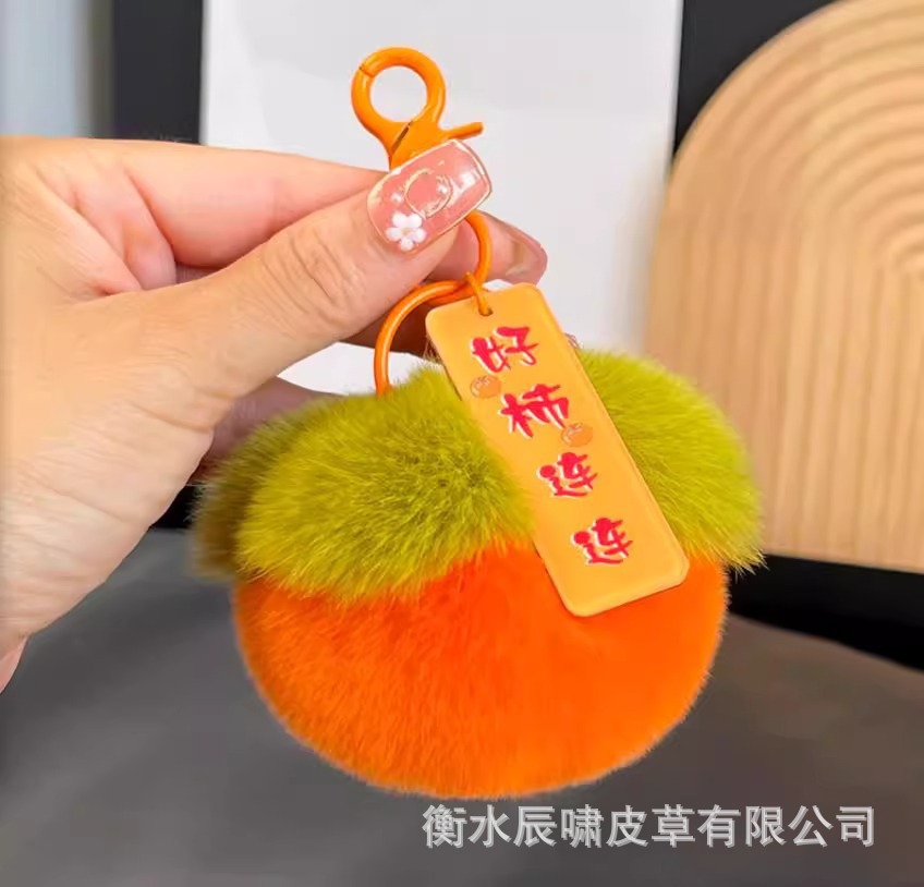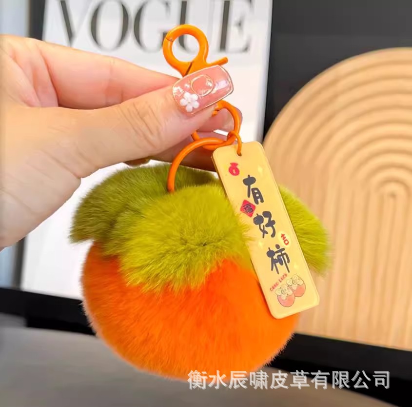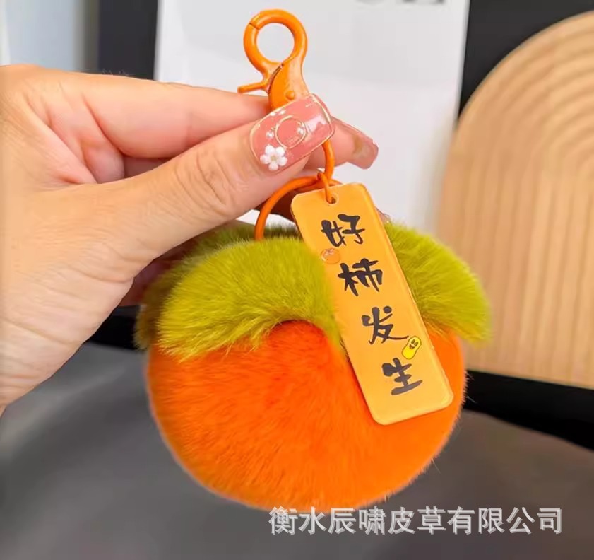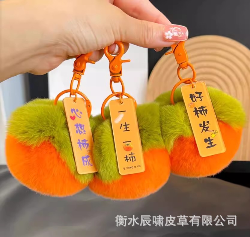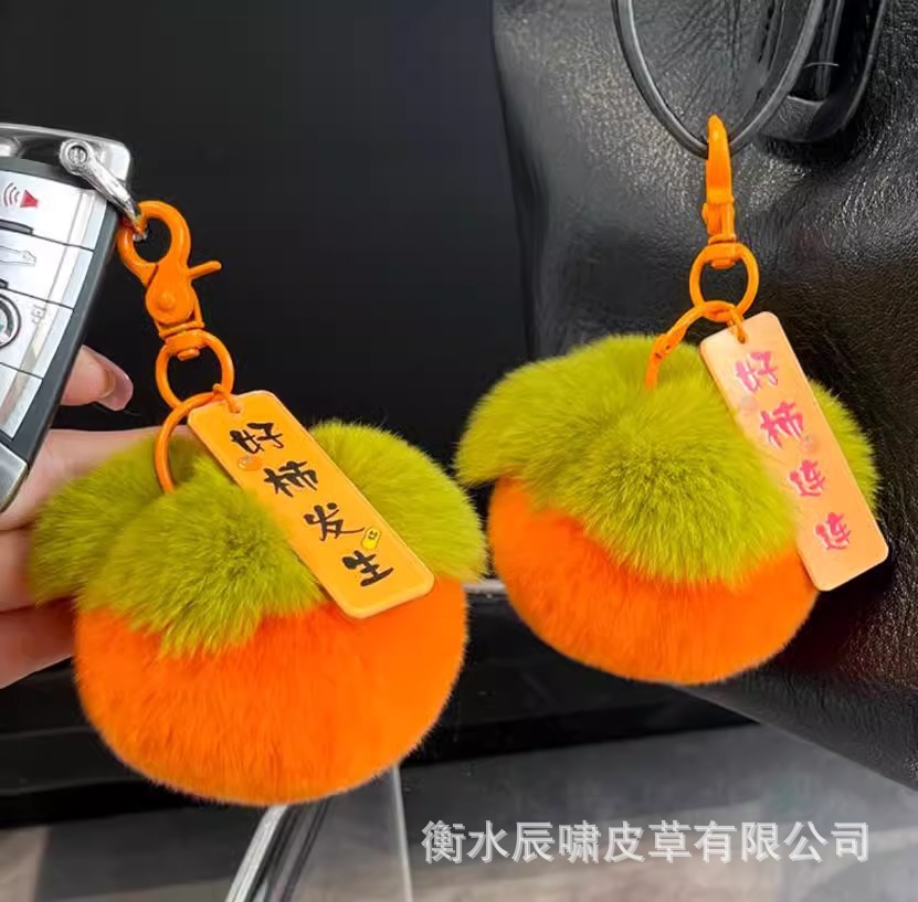 良い柿はぬいぐるみの柿のペンダントのキーホルダーに飾られています。