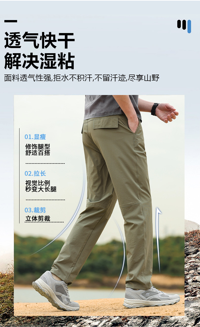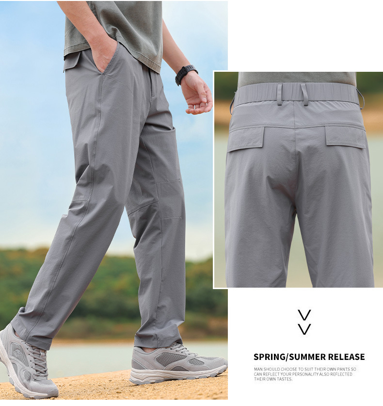 夏のカジュアルなズボンの男性のストレートの涼しい屋外の仕事のズボンの通気性の薄い弾力性の男性のズボンの韓国版のズボンの速乾のズボン