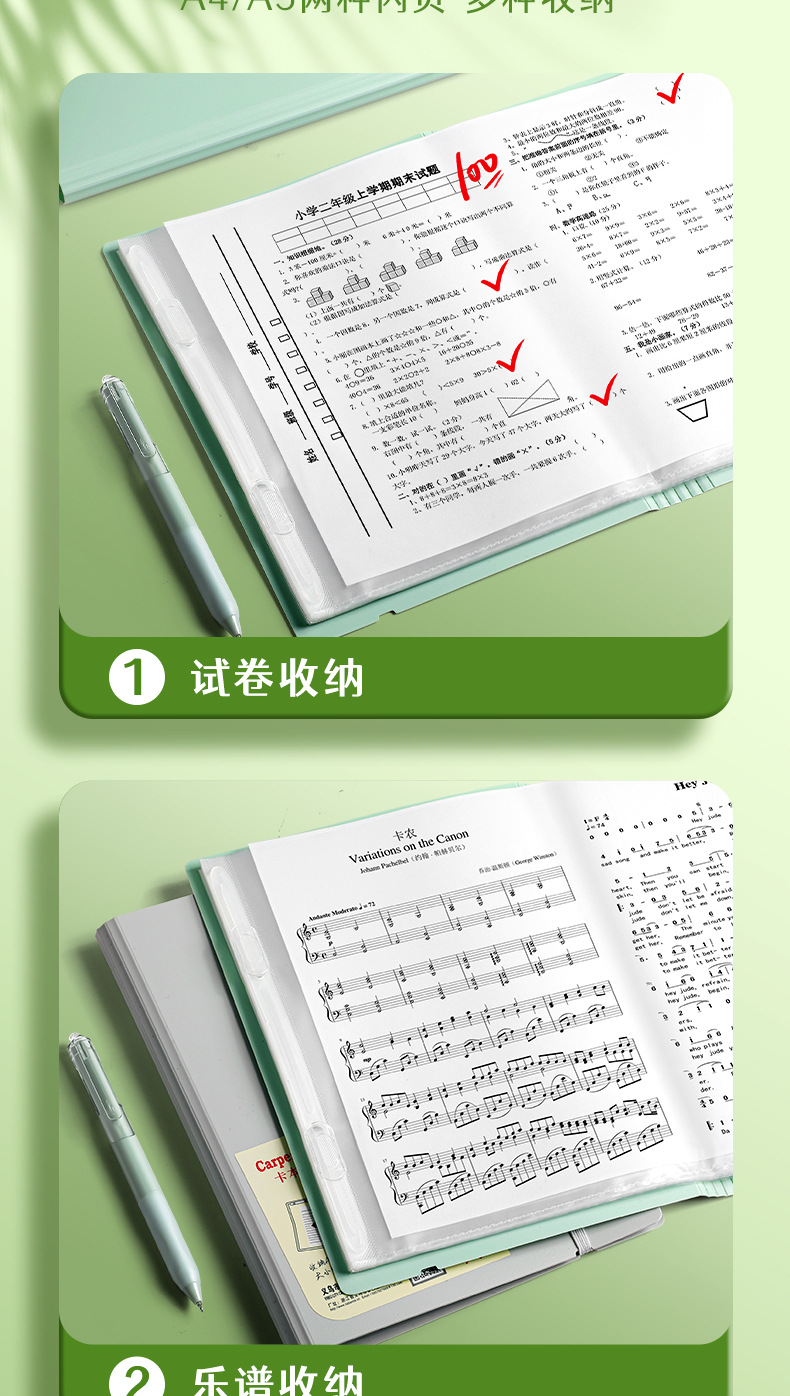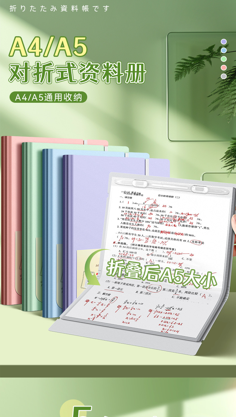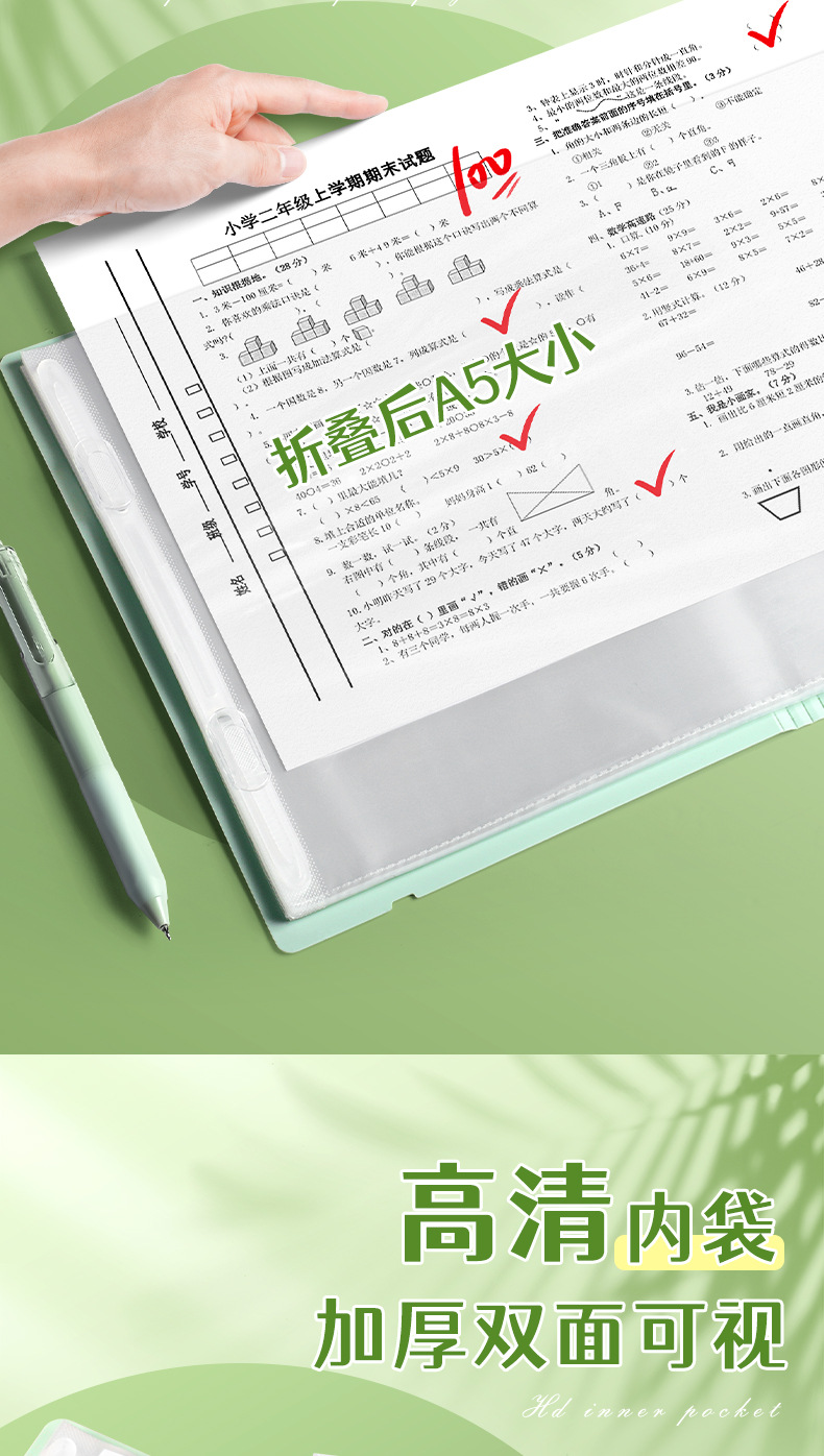 無傷折り畳みファイルa 4試巻収納クリップ学生用大容量ロール二つ折り収納帳資料整理