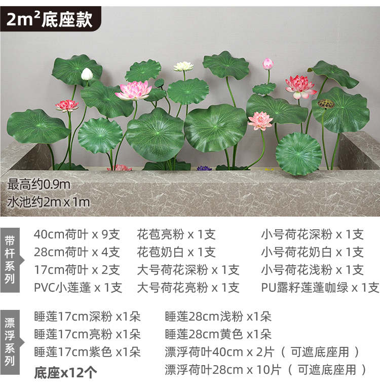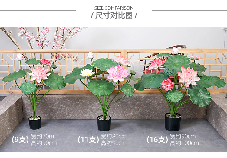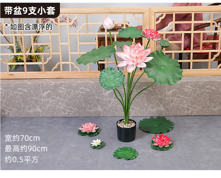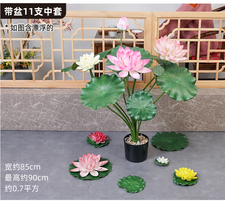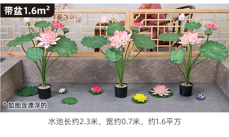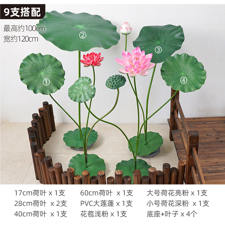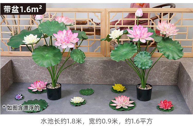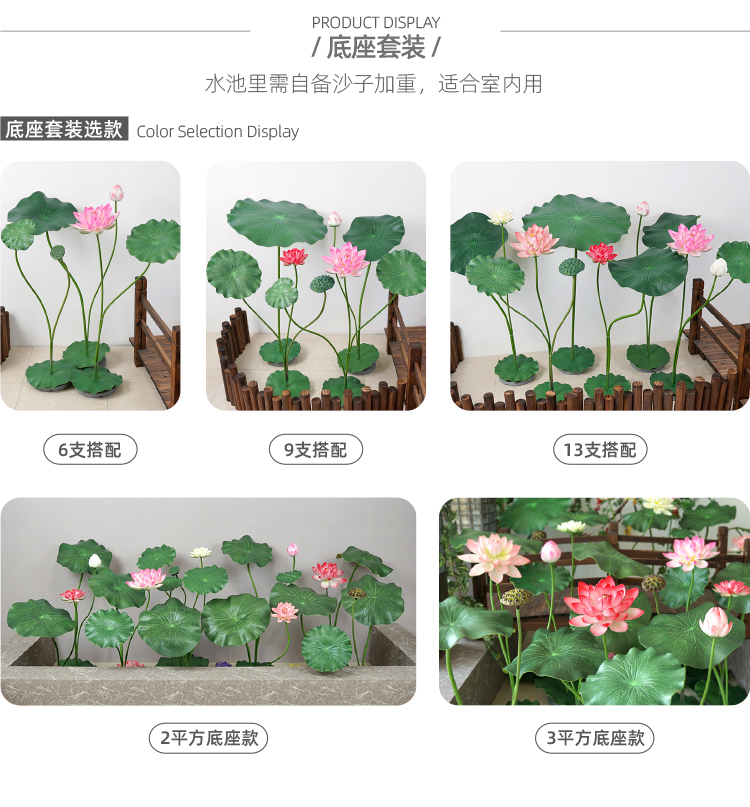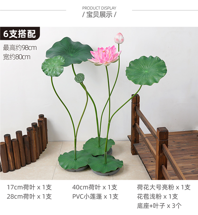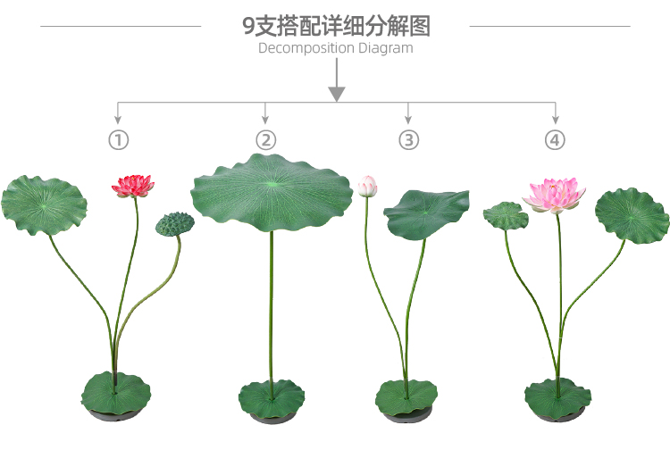 ハスの葉のハスの花の偽のハスの花のシミュレーションの花のプラスチックの大きい緑の植竿の池の装飾の写真を撮ってダンスの道具を演出します。