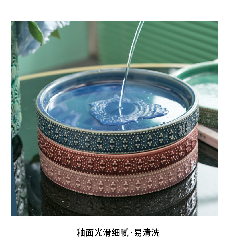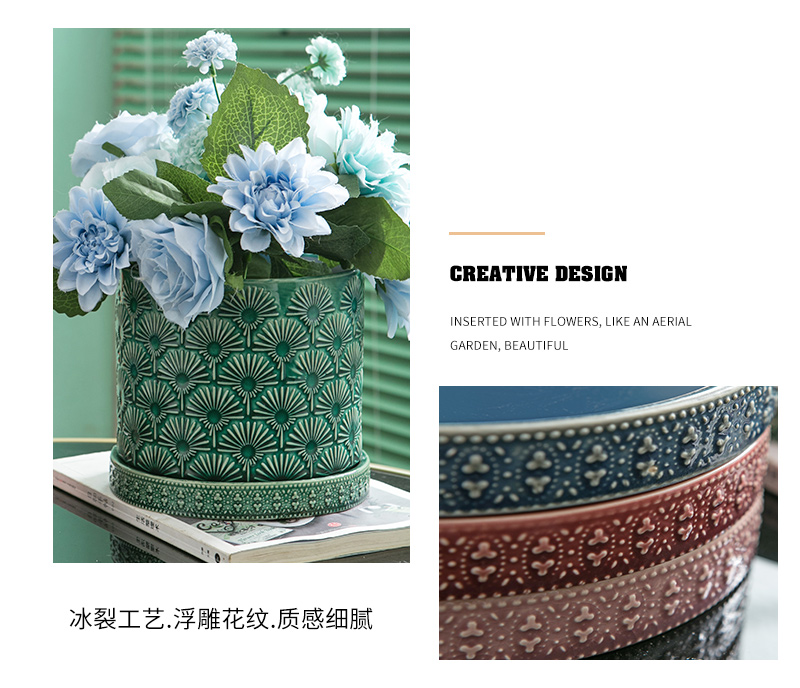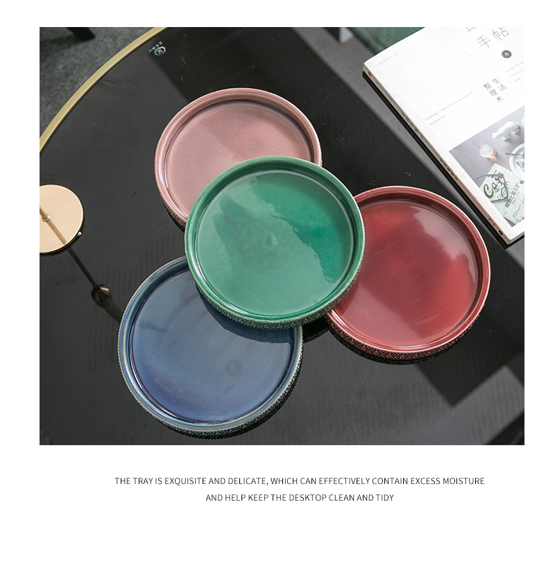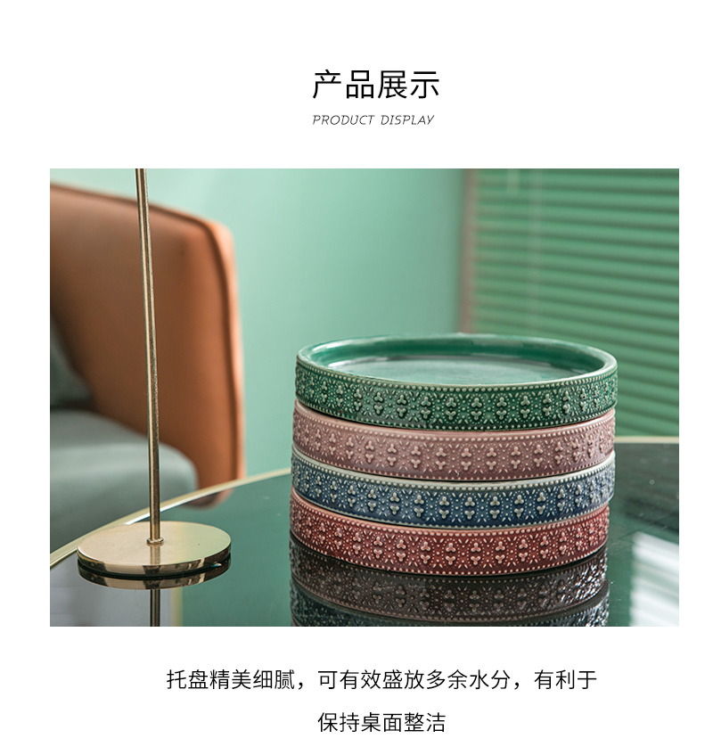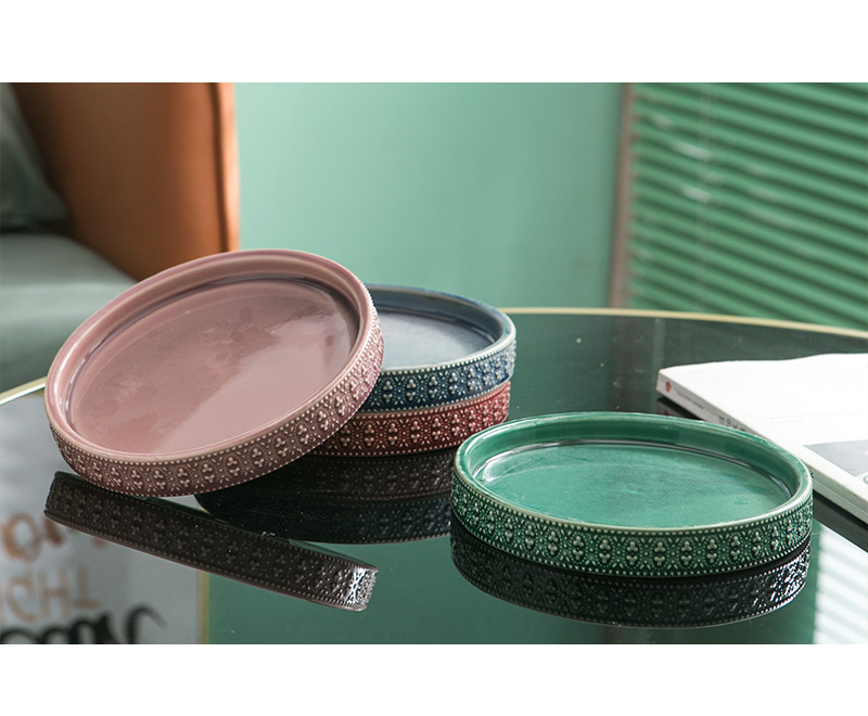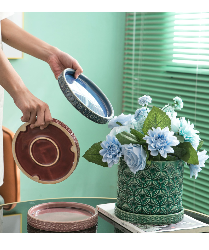 Mimihome出口植木鉢セラミックトレイ水受け皿緑植シャーシー円形ベース浮き彫り氷割れ植木鉢トレイ