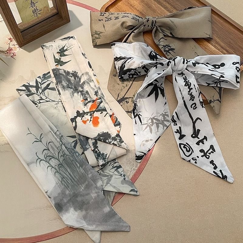 リボンコレクション 多用途 細長いシルクスカーフ ヘアタイ 文字柄 花柄 バッグ飾り ギフト 小さなシルクスカーフ ヘアバンド