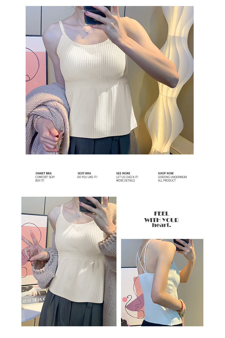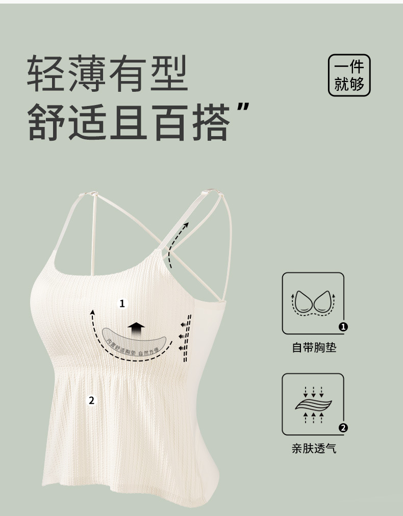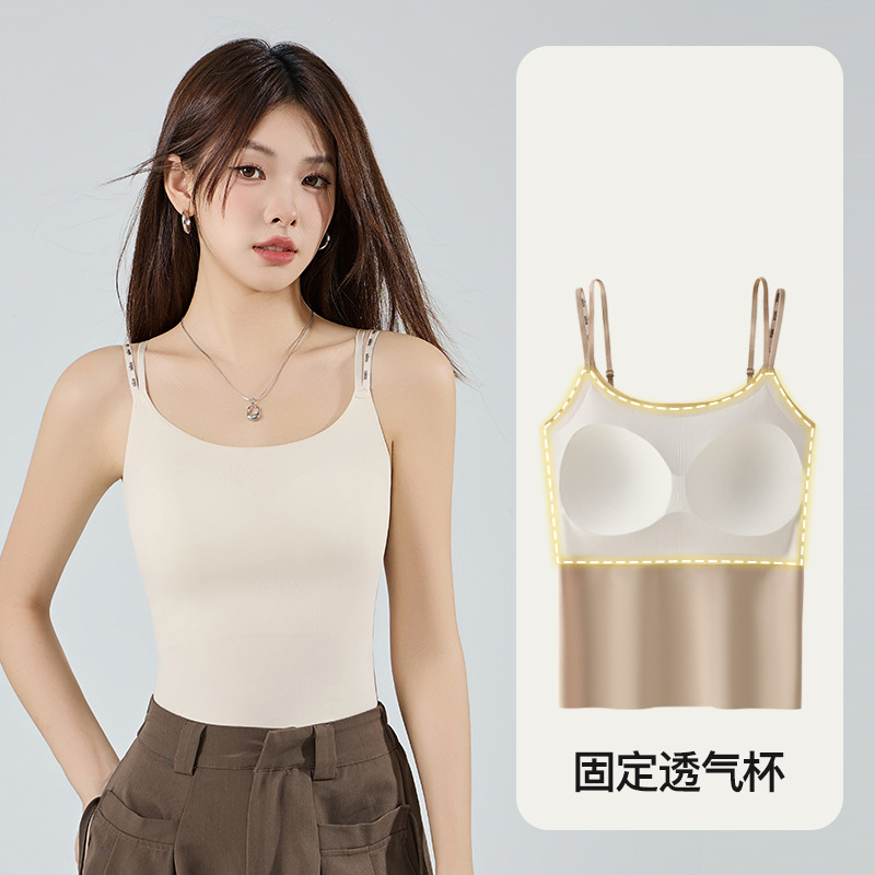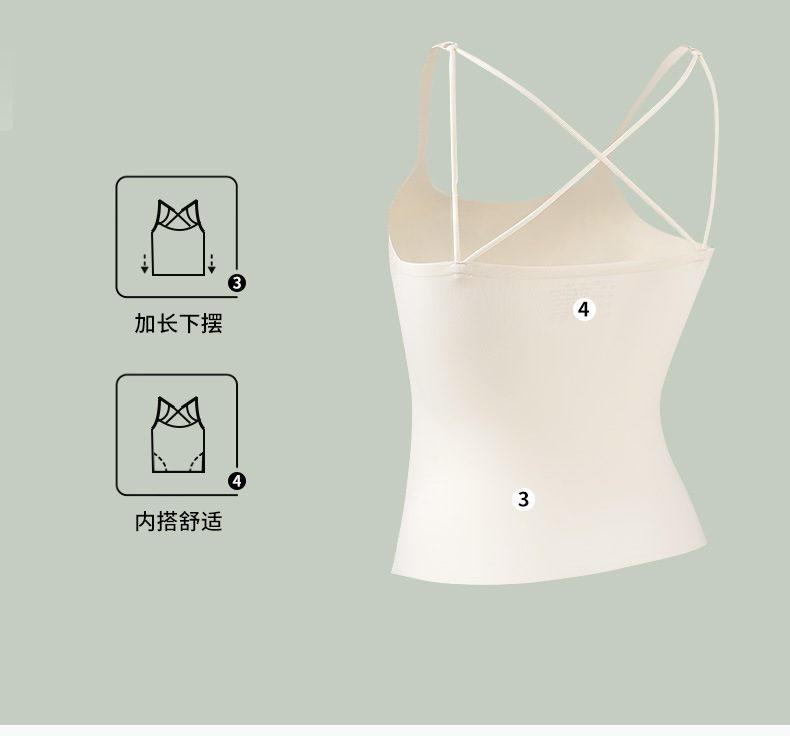 カイジナプリーツ多用途デザイン美背中キャミソール薄手通気性インナーセクシーシームレス一体型