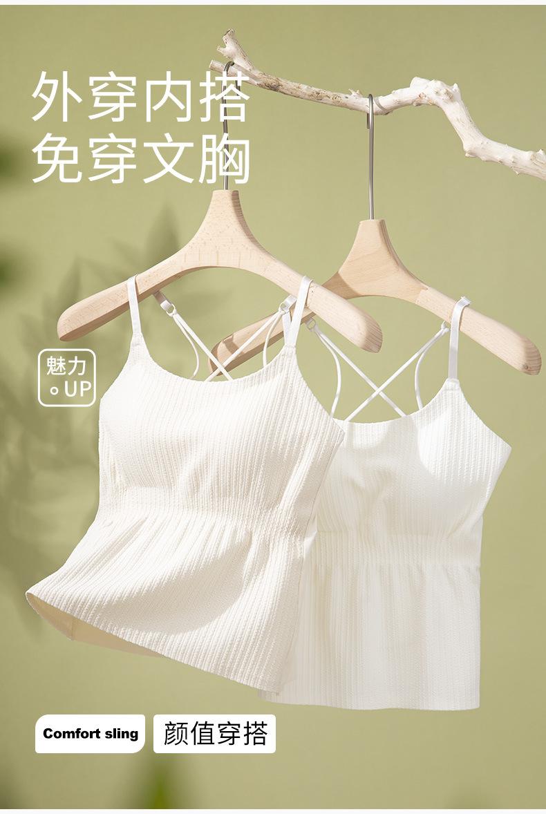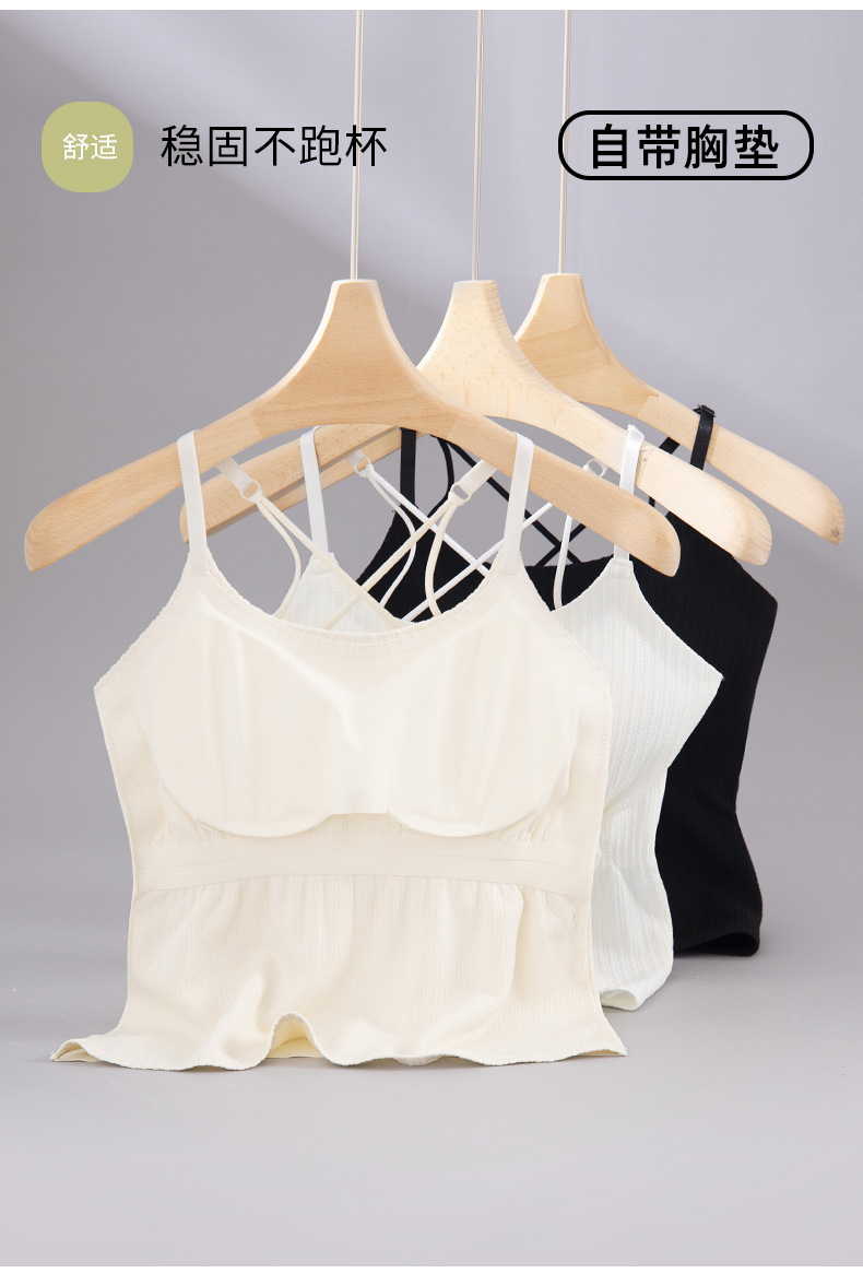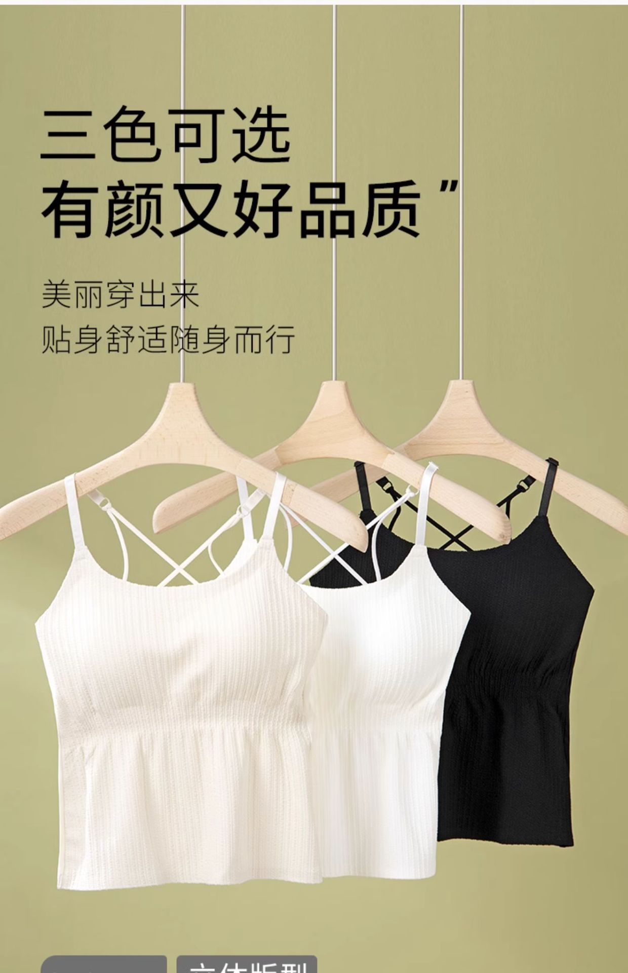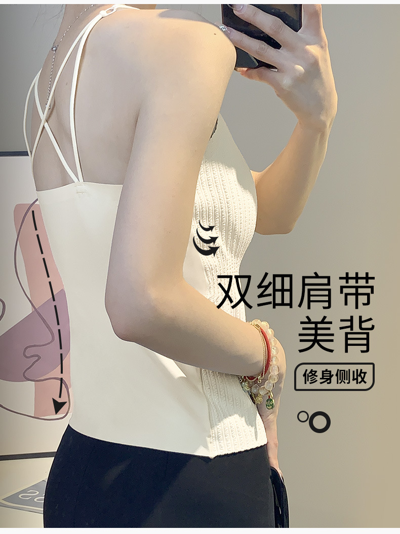 趙露思と同じスタイルのサスペンダーベスト、美背デザイン、胸パッド付き、薄手、ワンピースタイプ、インナーとしても着用可能、セクシーなトップス、セクシーなスタイル