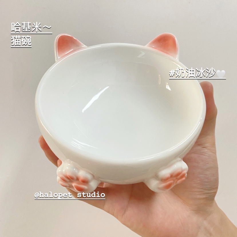 猫碗の陶磁器の斜めの口の碗はひっくり返しにくいです。