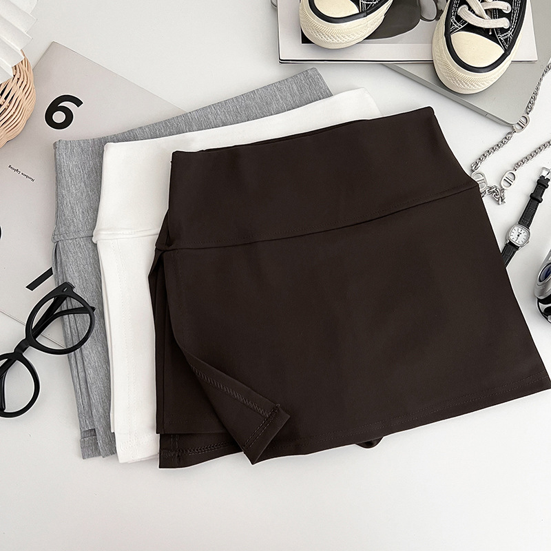 防走光デザイン感錦綿半身スカートファッション百合側開叉ヨガズボンスカート弾力修身スカート卸売り